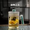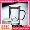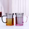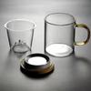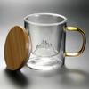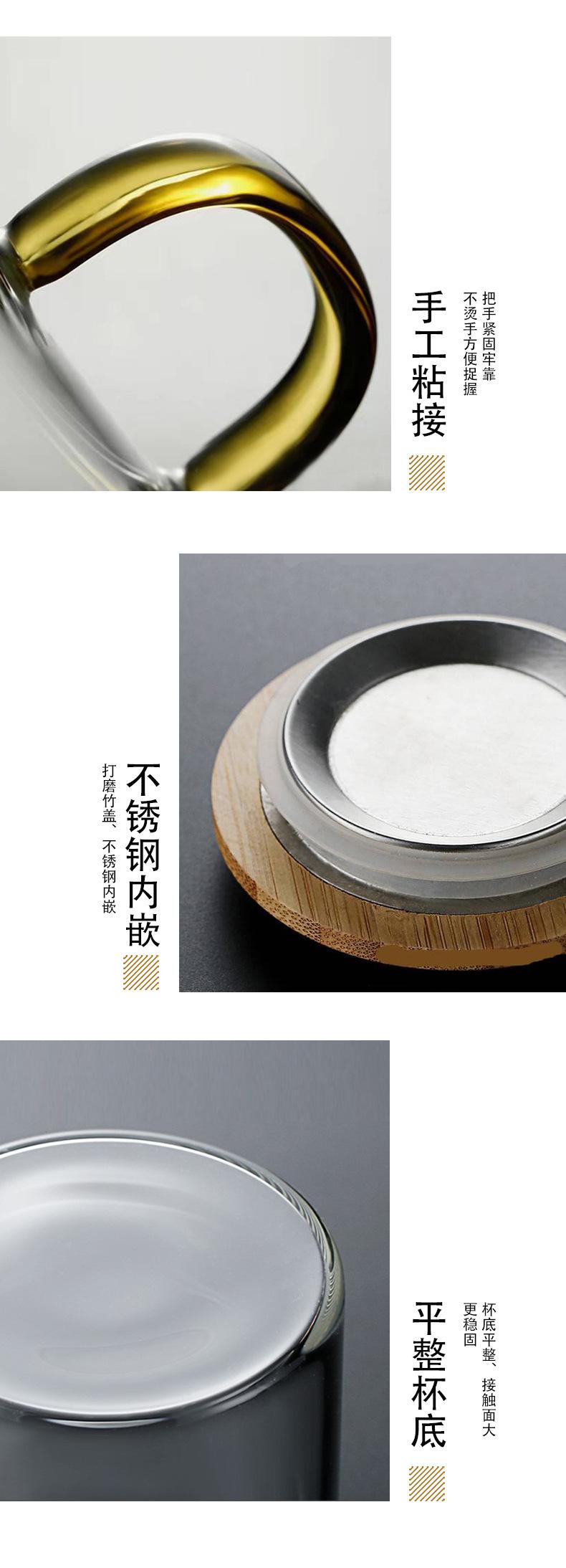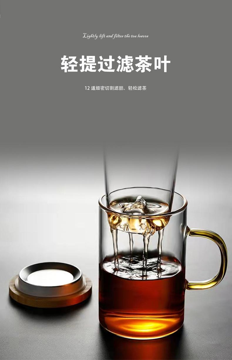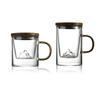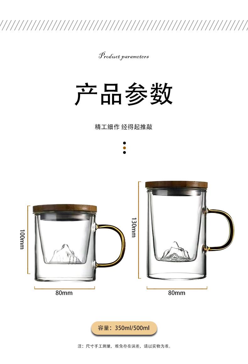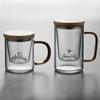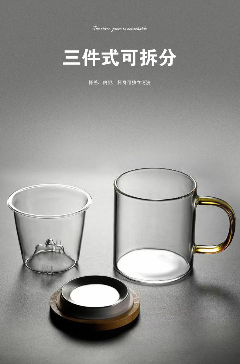 Taza de vidrio calentable resistente a altas temperaturas para hacer té Taza Vista a la Montaña con tapa de bambú Taza para separación de té y agua con asa para hogar oficina