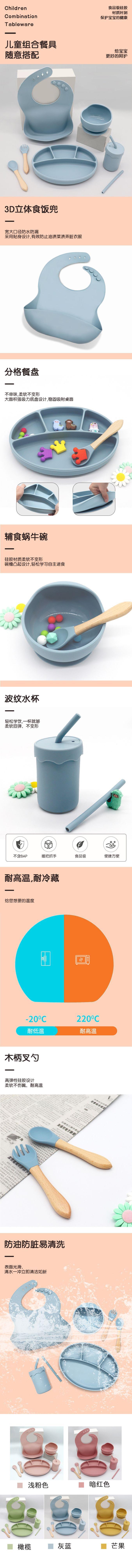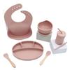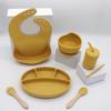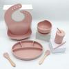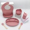 Plato de silicona, babero para bebé, cuenco para bebé, vajilla, cuchara, tenedor, pajita resistente a caídas, traje de taza, disponible en stock transfronterizo