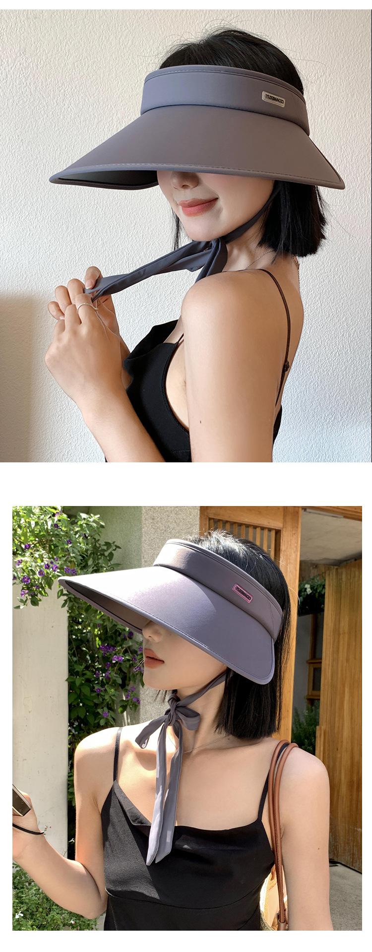Sombrero de protección solar con lazo para mujer, de seda helada, de ala ancha, plegable, para ciclismo, con protección UV, parte superior vacía