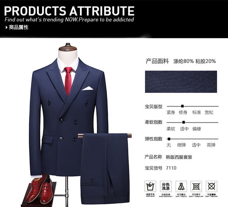Traje de hombre de talla grande, traje de dos piezas, moda, cruzado, color liso, traje informal de negocios, traje formal.