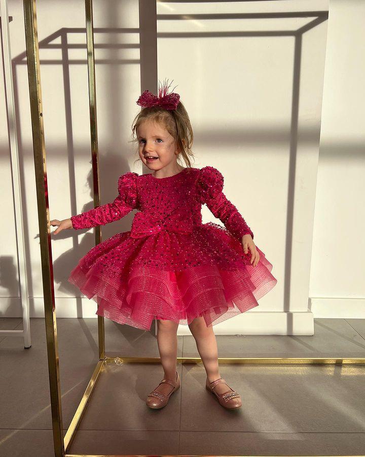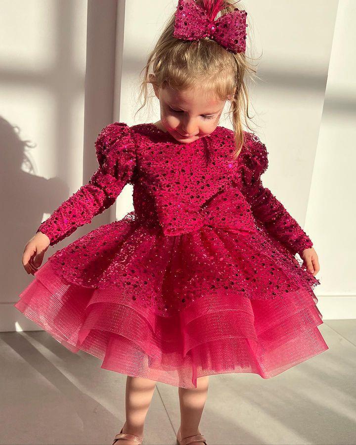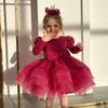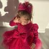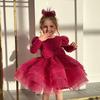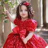 Vestido rojo de lentejuelas para niñas, vestido de manga larga, vestido de princesa brillante, vestido festivo de cumpleaños para bebés, vestido de un año