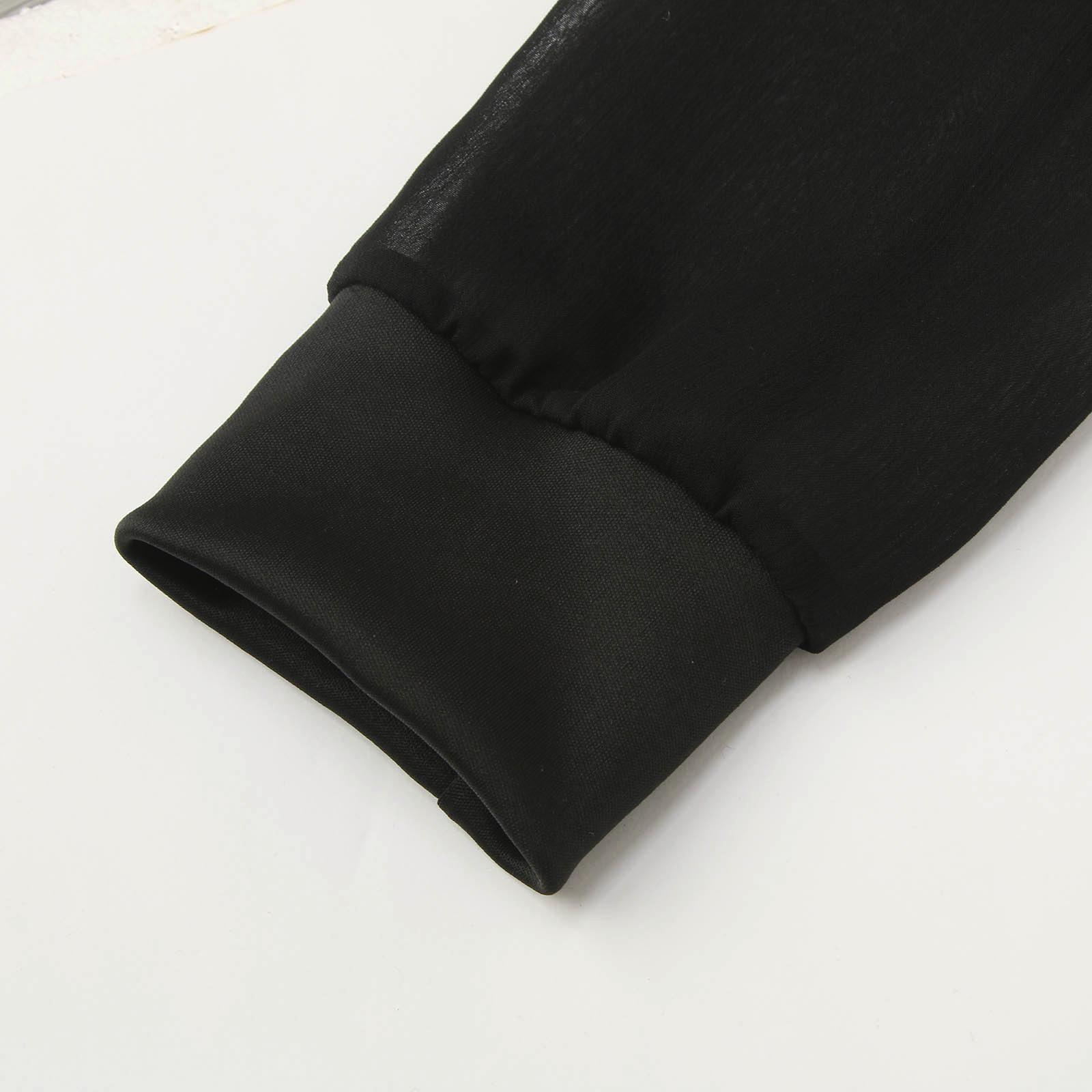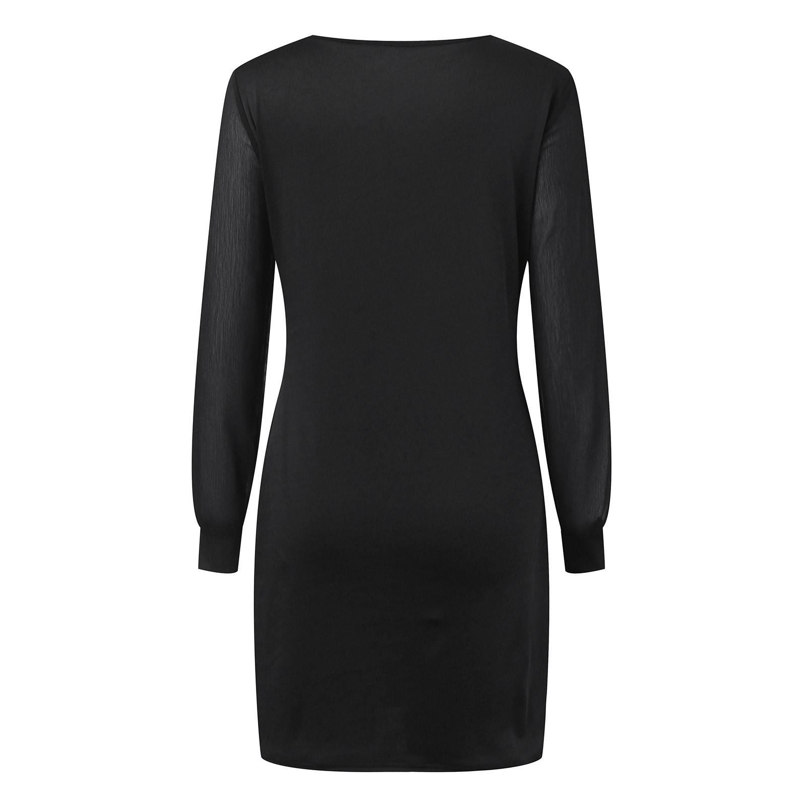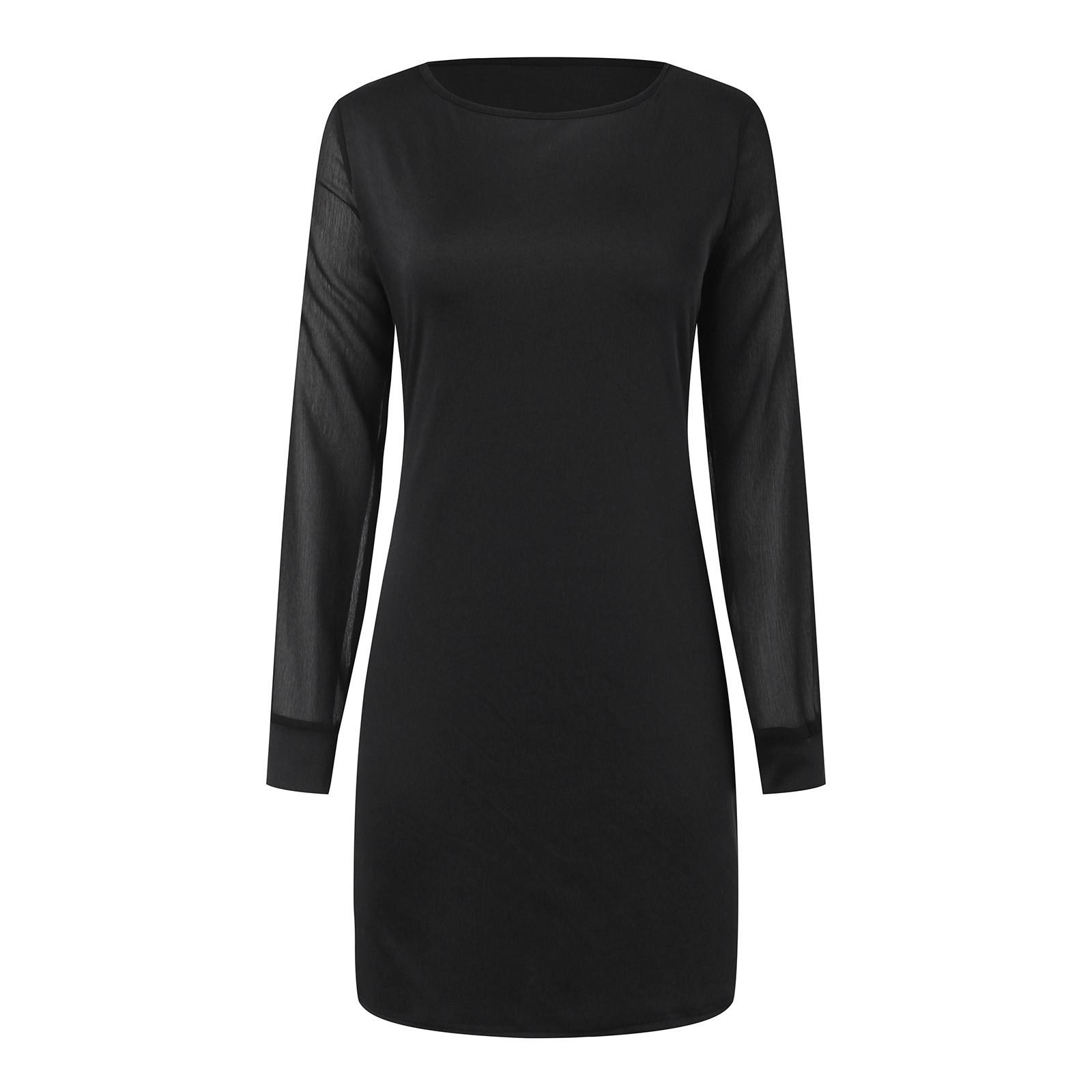 Vestido Transfronterizo Europeo y Americano de Color Sólido Malla Gasa Costuras Manga Larga Cuello Redondo Simple Pulóver Vestido de Cadera Negro