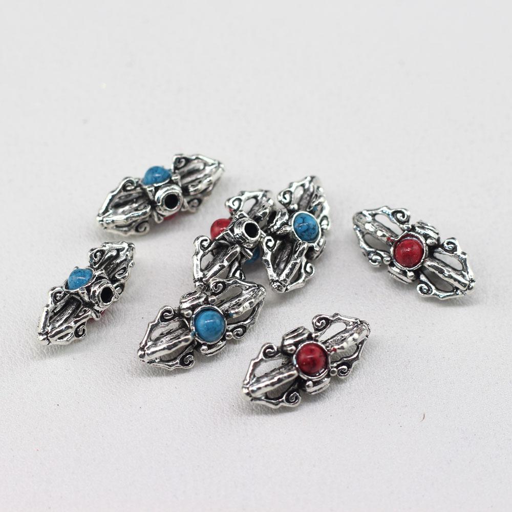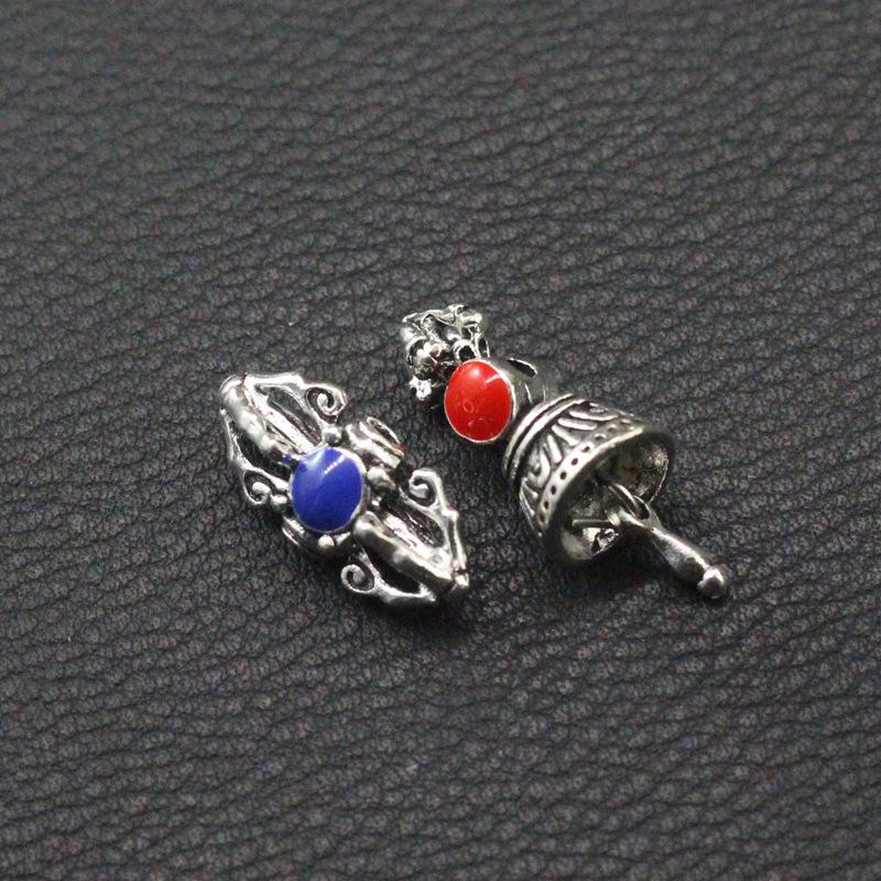Nombre: Pulsera collar DIY Bodhi accesorios de joyería aleación doble cara goteo de aceite rojo y azul vajra vajra campana parte trasera nube