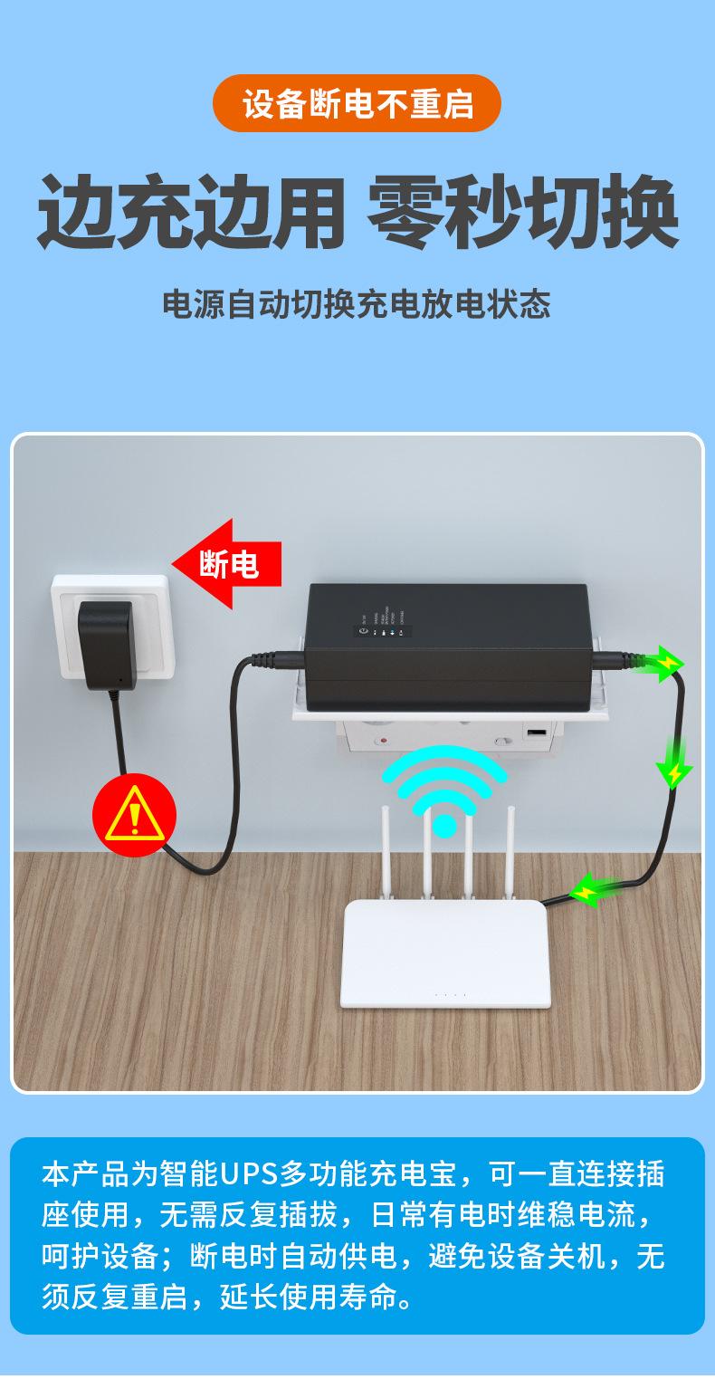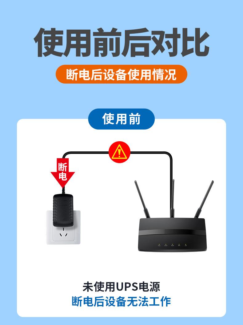 Enrutador óptico Cat de 12 V CC, 2,5 A y 9 V, fuente de alimentación ininterrumpida, batería de respaldo, mini UPS de gran capacidad