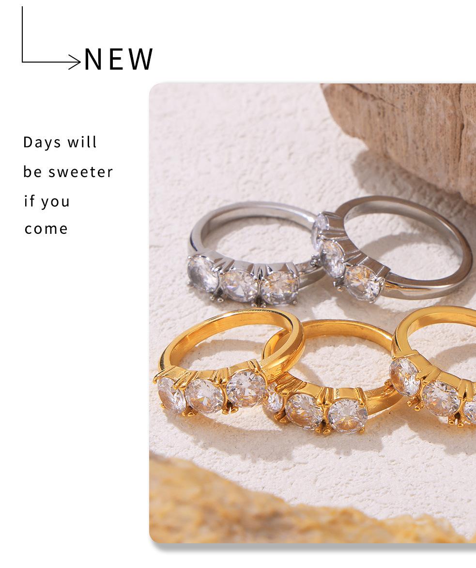 Anillo modelado de micro diamantes geométricos retro transfronterizo acero de titanio chapado en oro de 18k moda chic anillo comodín al por mayor