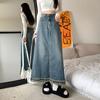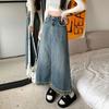 Falda vaquera retro de corte A con diseño de óxido para mujer, estilo coreano, de verano, recta, de cintura alta y media longitud.