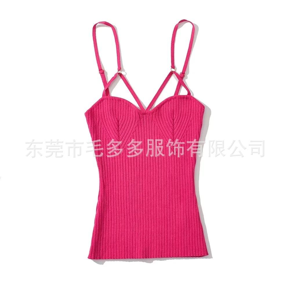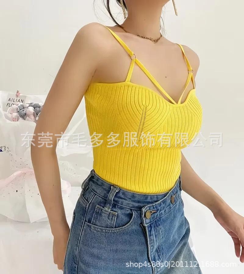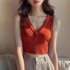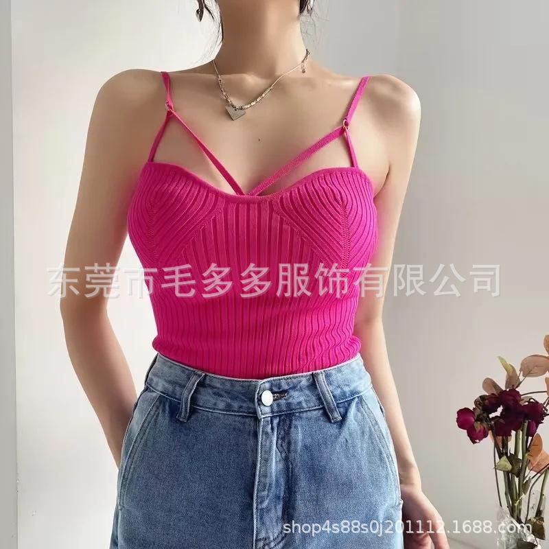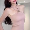 Camisola de Punto con Hebilla de Diseño de Chica Caliente para Mujer Primavera y Otoño 2025 Nuevo Ins Sexy Sin Mangas Top Ajustado