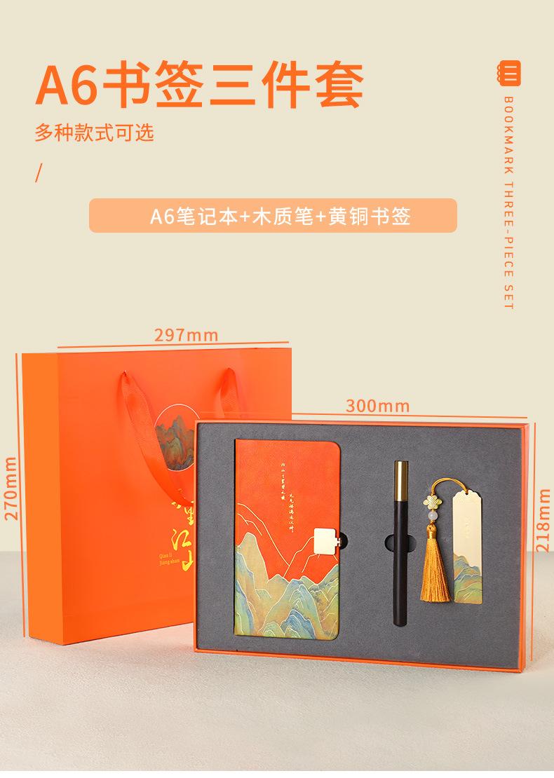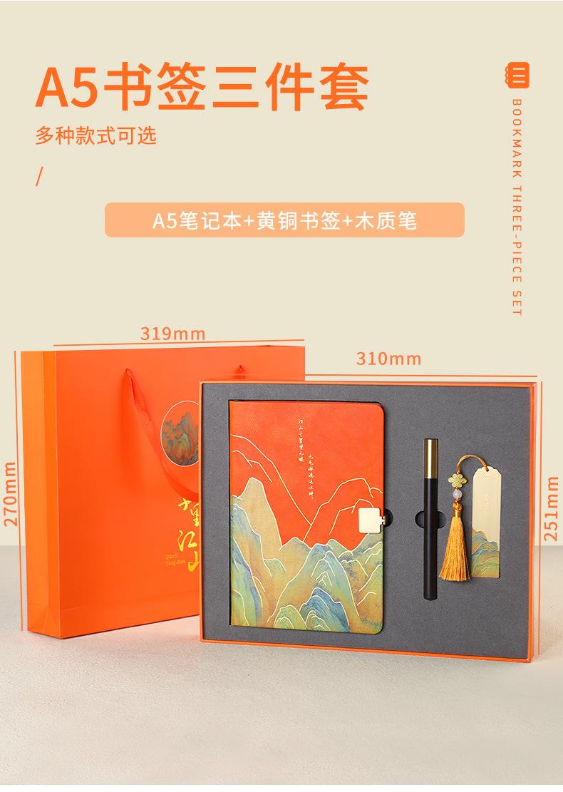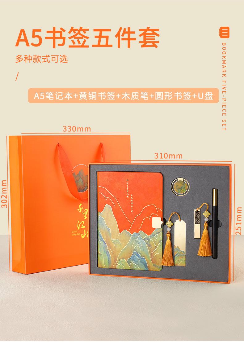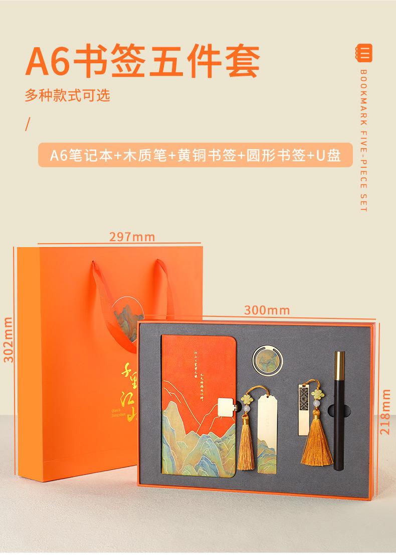 A5 orange sandalwood pen two-piece set], A5 orange brass bookmark three-piece set], A5 Orange U disk bookmark ...