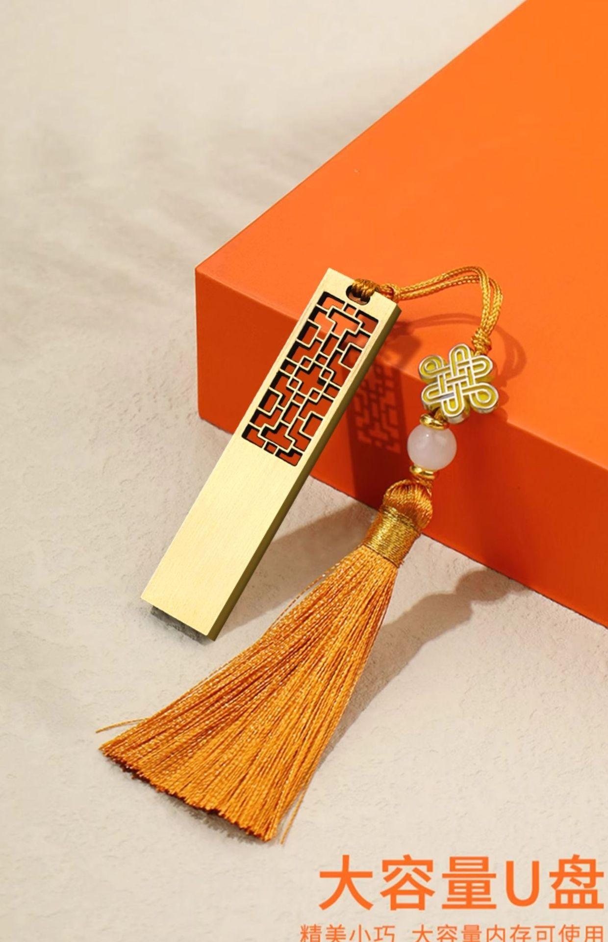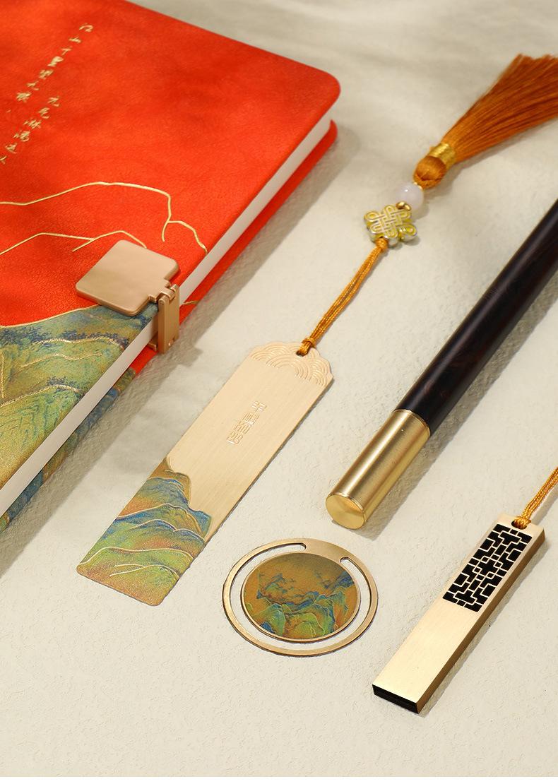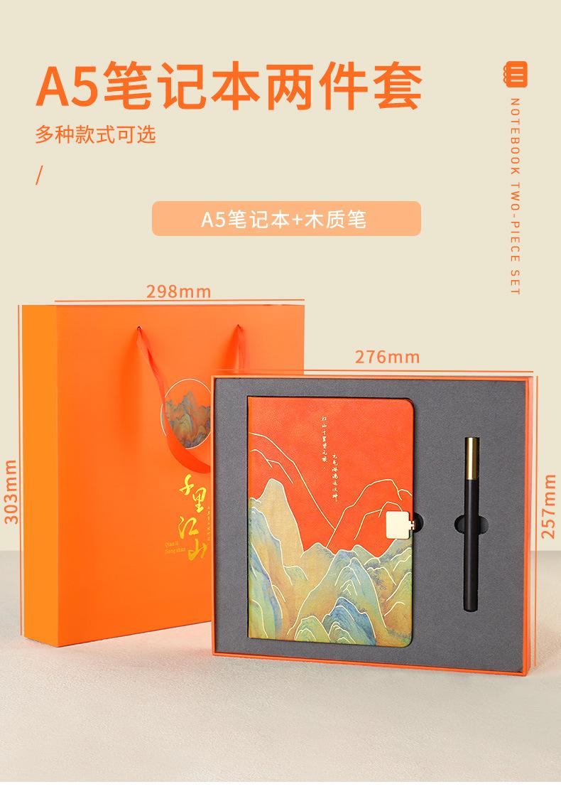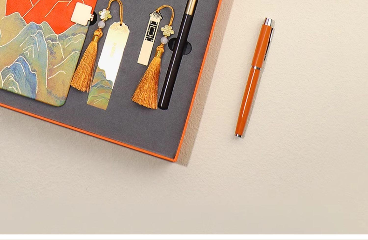 A5 orange sandalwood pen two-piece set], A5 orange brass bookmark three-piece set], A5 Orange U disk bookmark ...