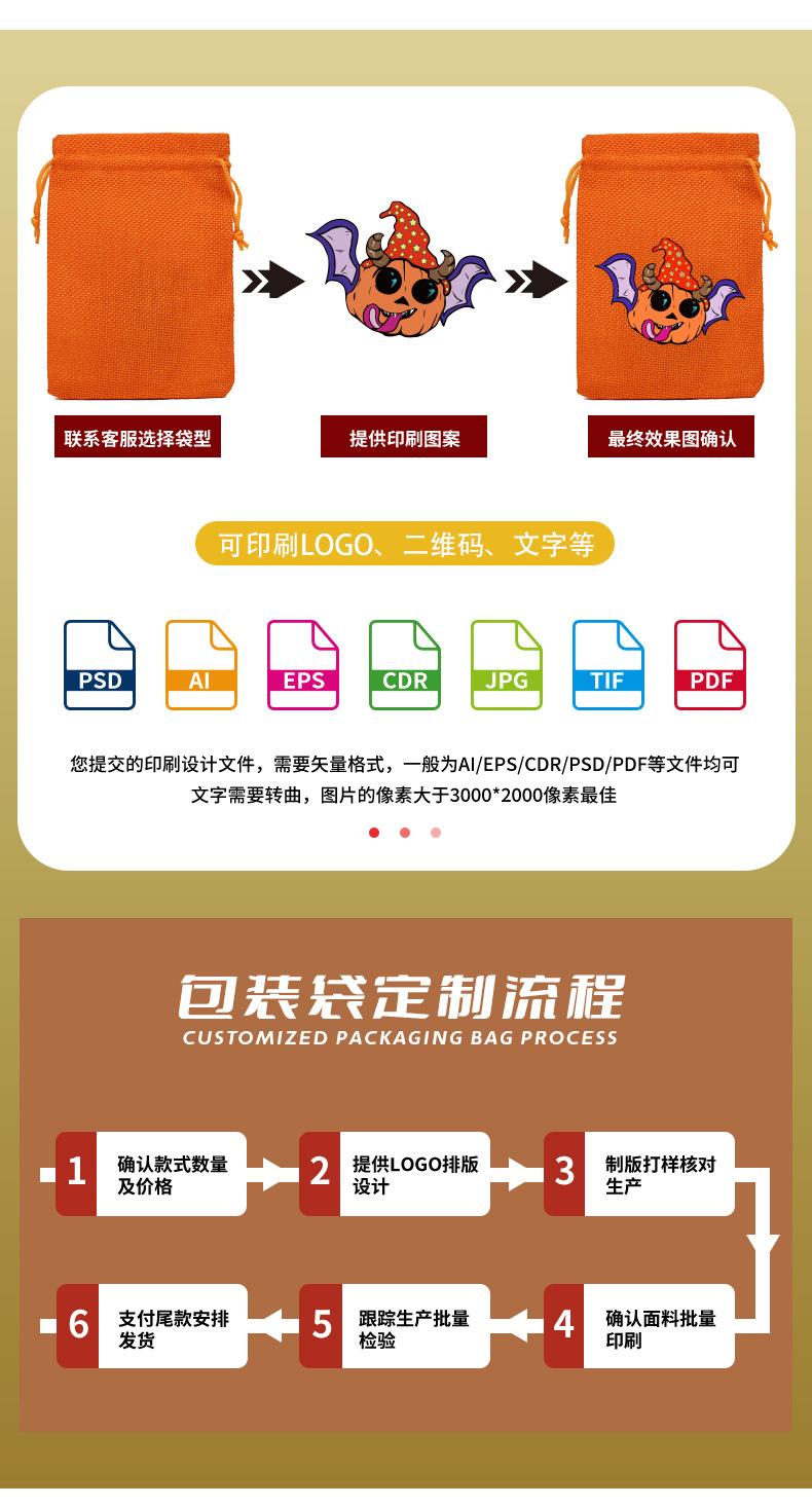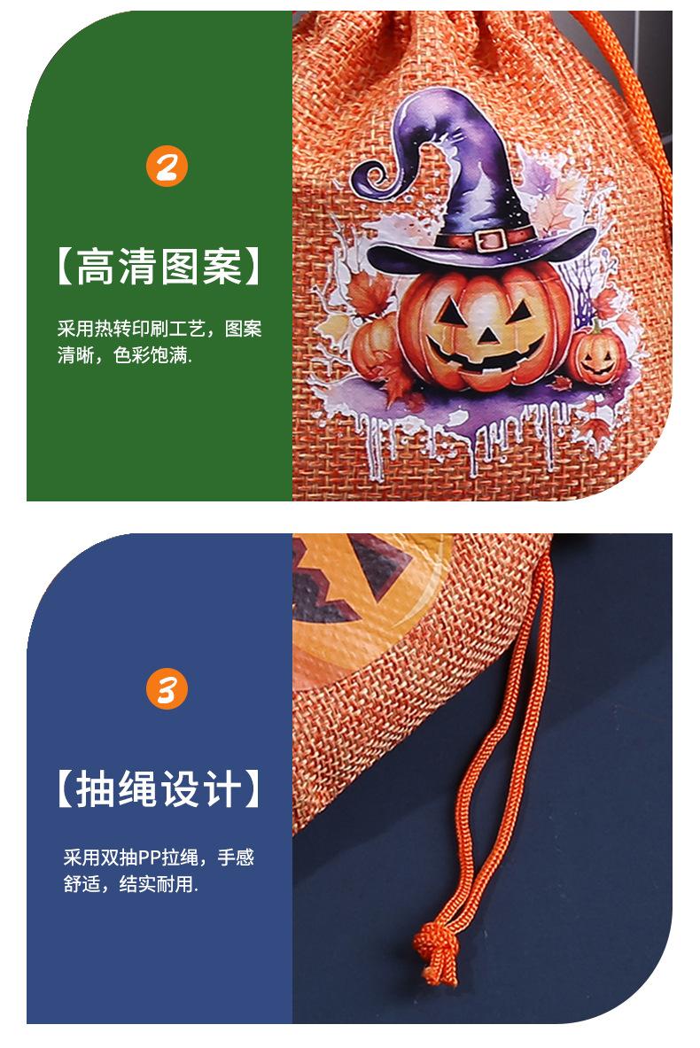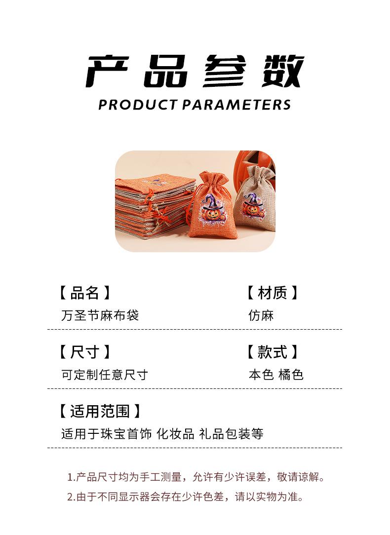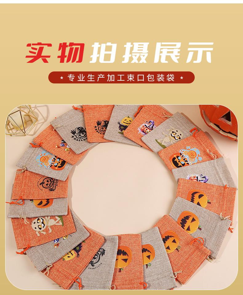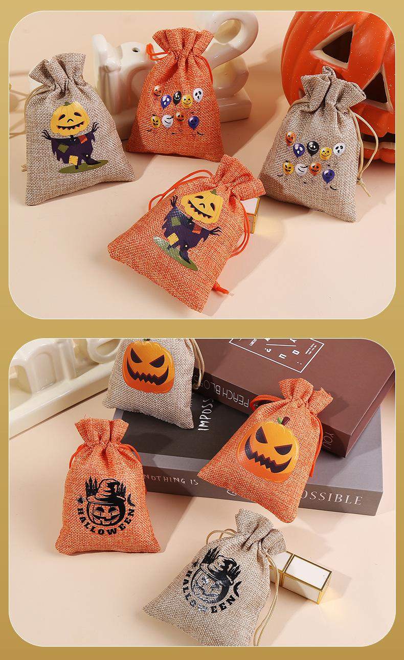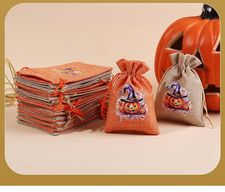 Bolsa de arpillera de Halloween personalizada con cordón para dulces de calabaza, bolsa de regalo de Halloween con cordón