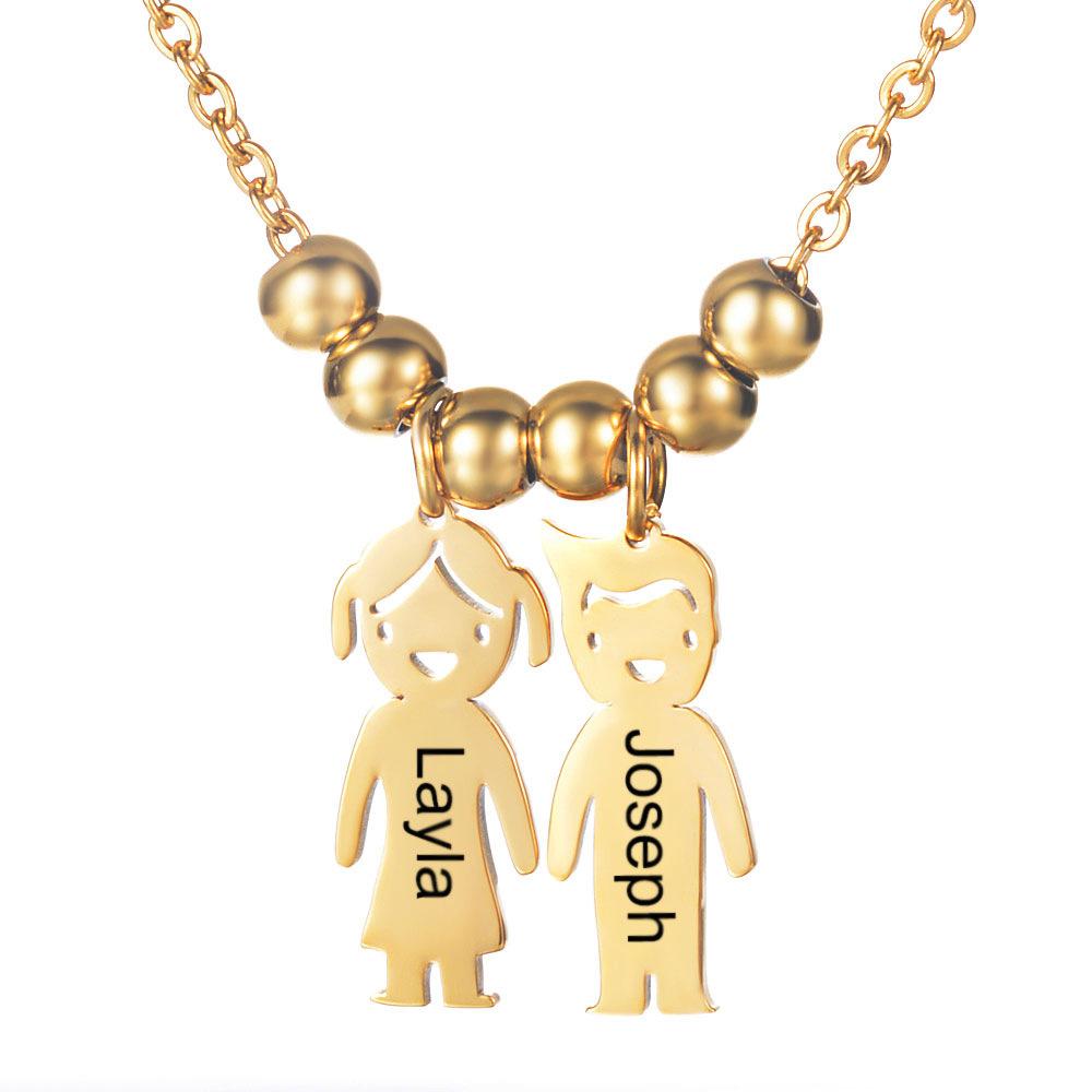 Collar con colgante de estación independiente transfronteriza con nombre grabado para niños y niñas con cuentas de acero inoxidable Regalo para el Día de la Madre