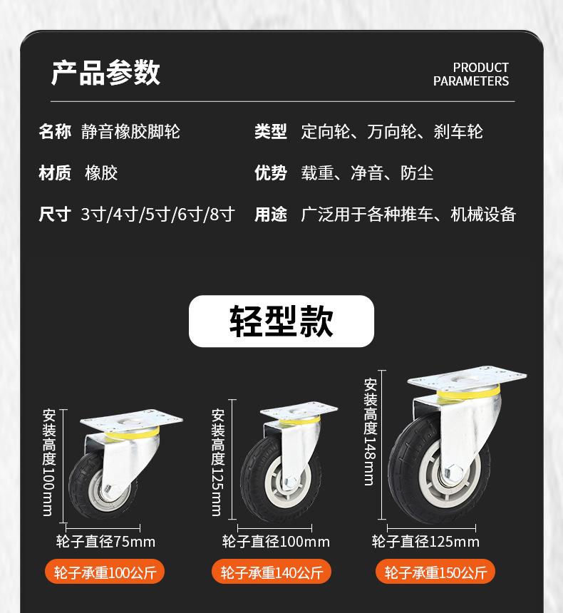 Venta directa de fábrica: rueda universal de 3, 4 y 5 pulgadas, de goma, silenciosa, resistente al desgaste, plana, para carretilla.