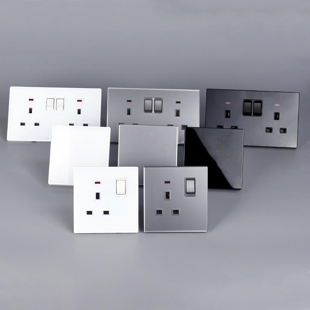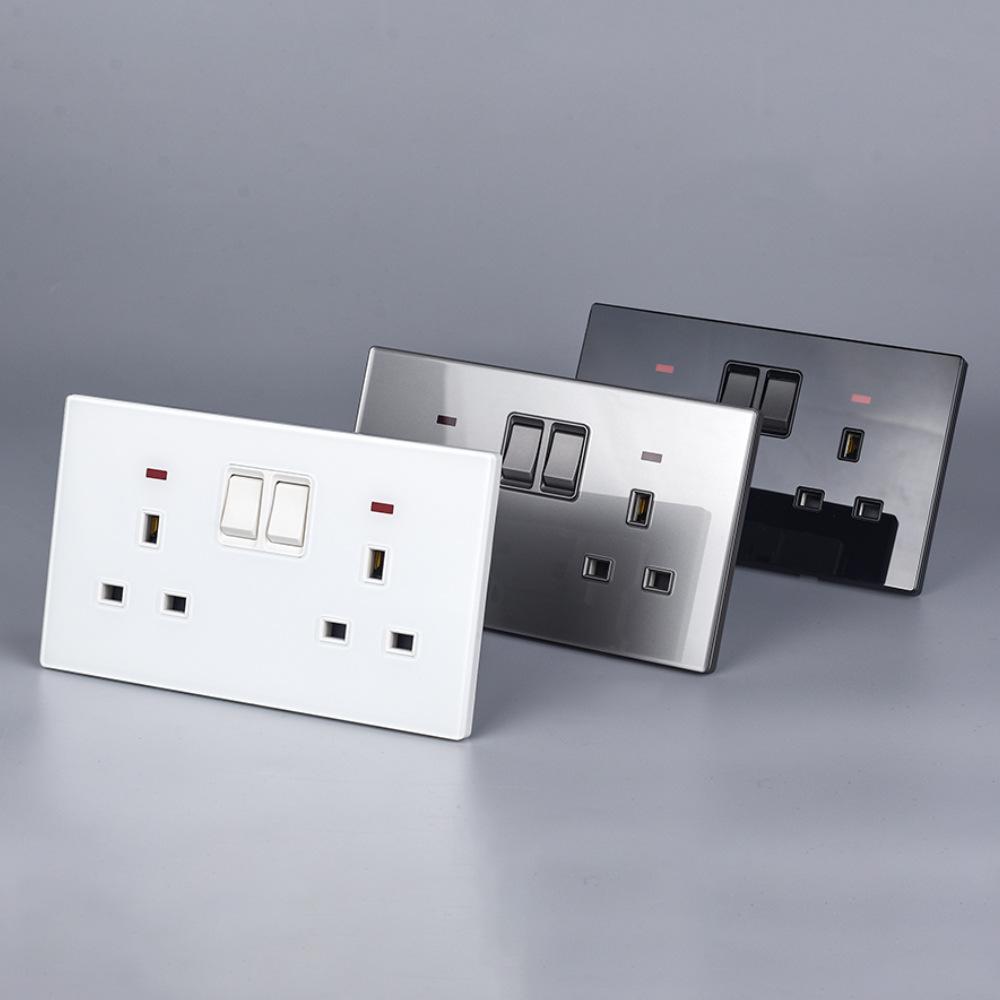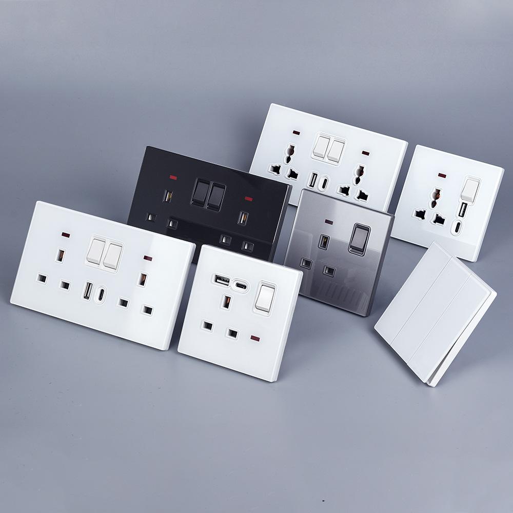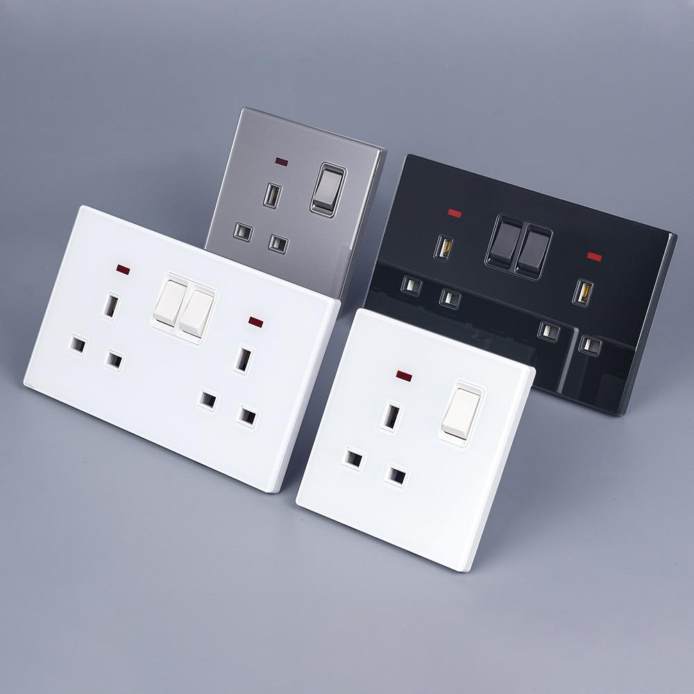 Enchufe Británico de Hong Kong de 13A con Interruptor Enchufe Triple Estándar Británico Eléctrico Tres Orificios Hogar Oscuro Panel de Vidrio de Pantalla Completa