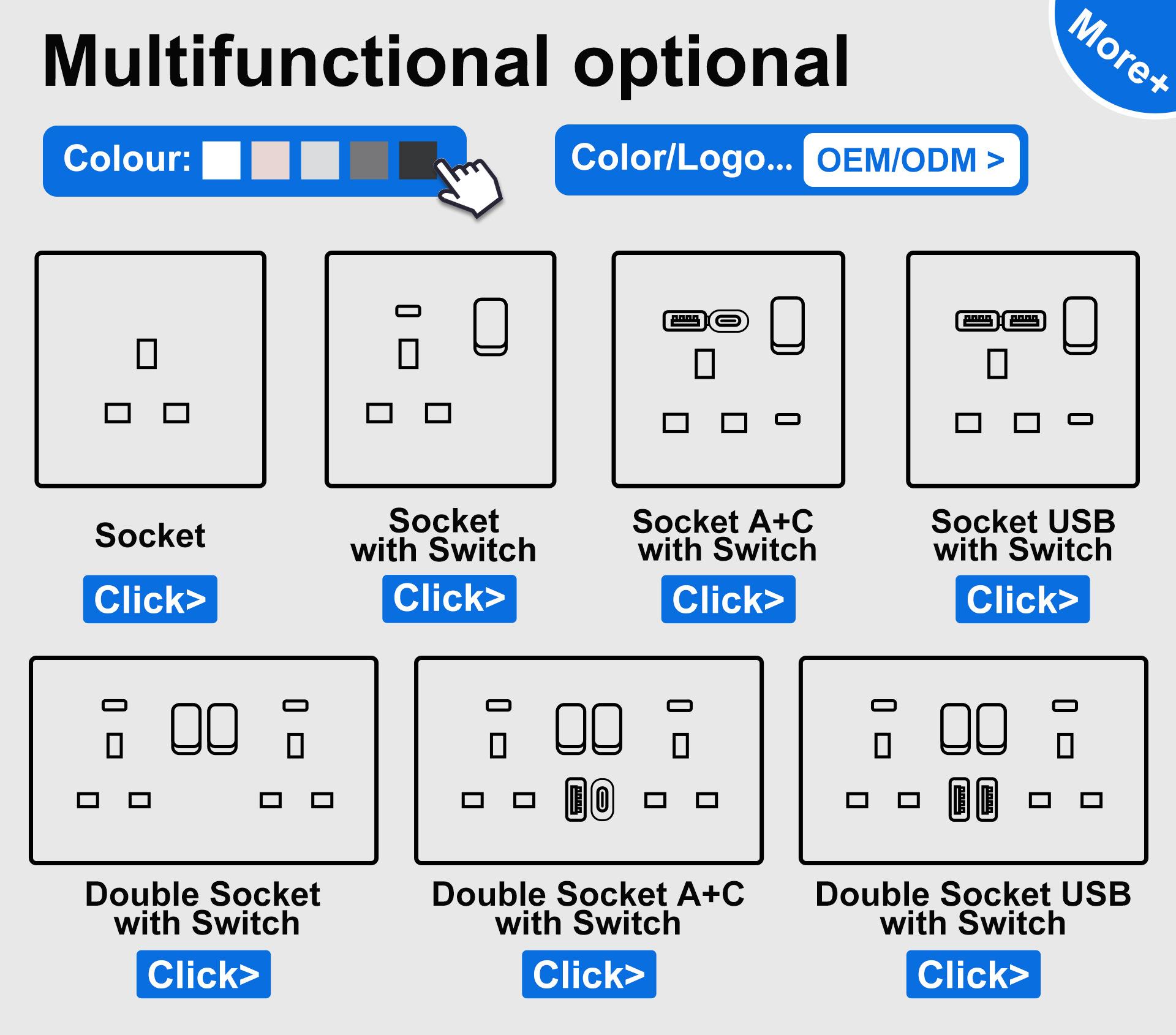 British plug with switch white, British plug with switch black, British plug with switch gray