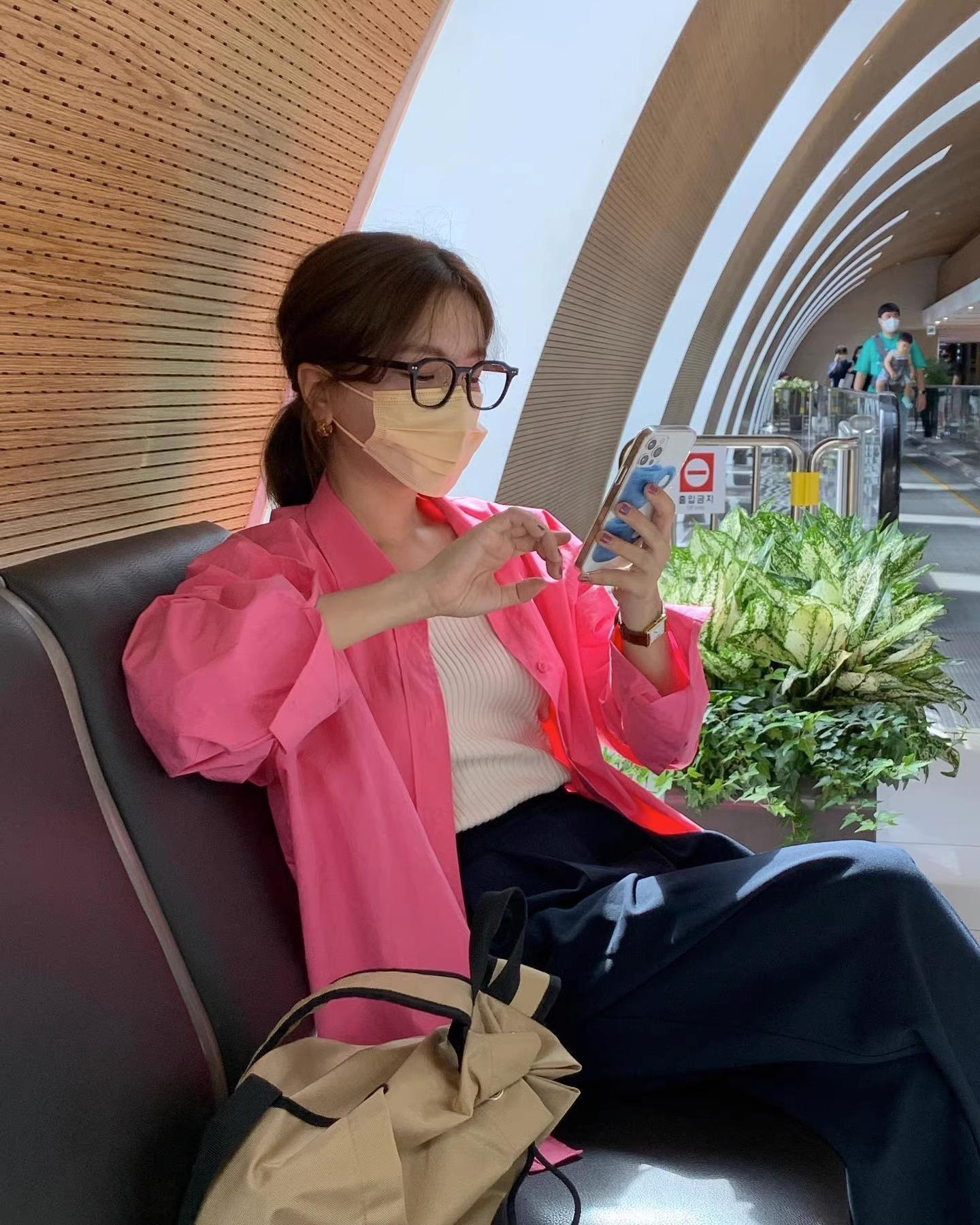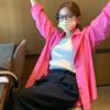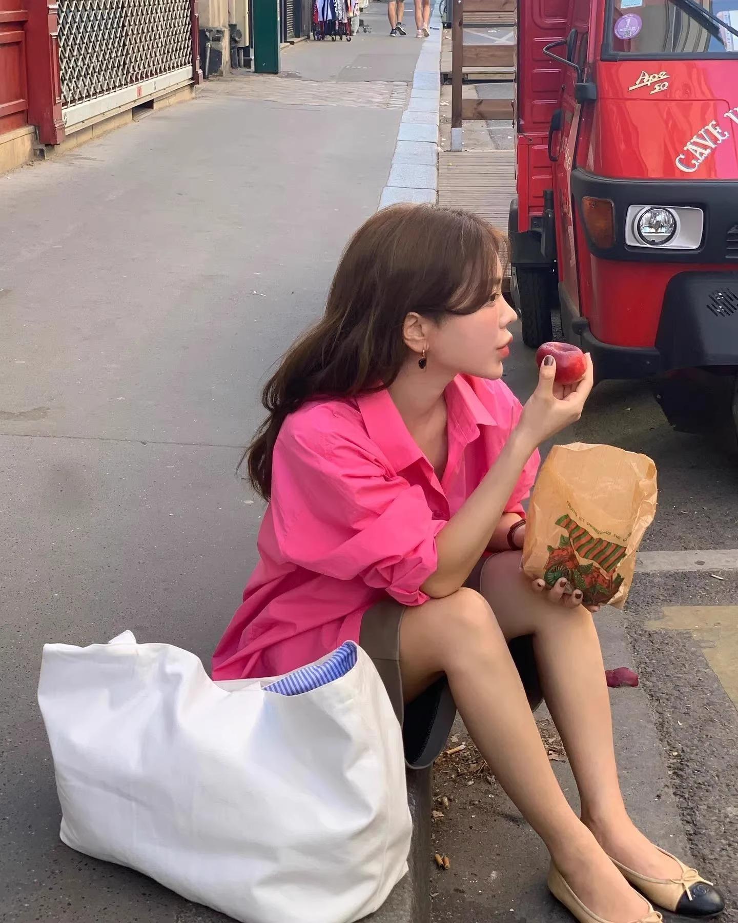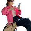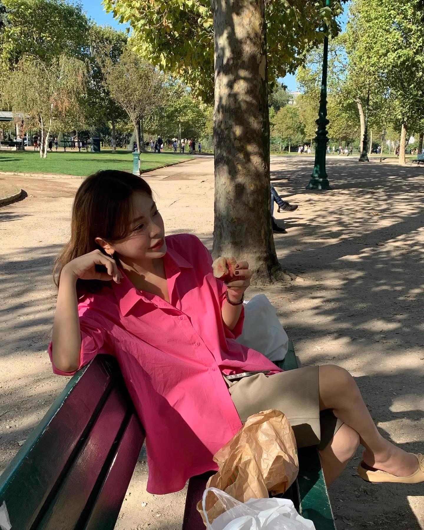 Camisa de Capas Rosa Blanco para Mujer 1688 Otoño Nuevo Estilo Nicho Francés Camisa de Manga Larga Top
