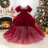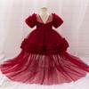 Vestido de princesa para niña de un año, vestido de novia para niña, vestido de cola de niña de las flores, vestido de exhibición