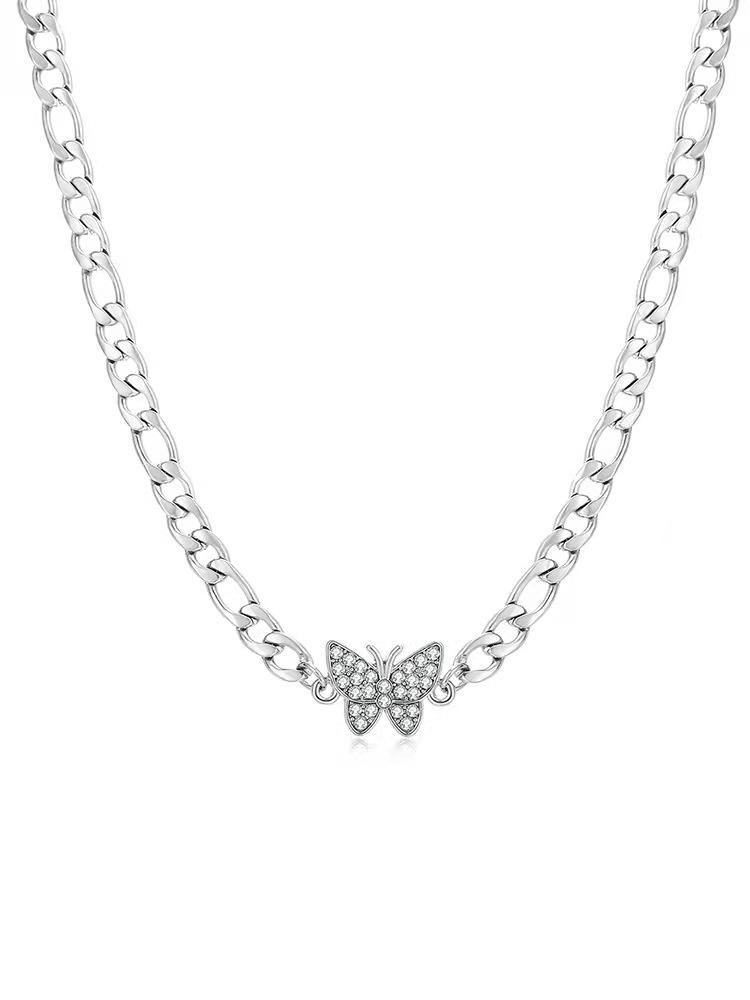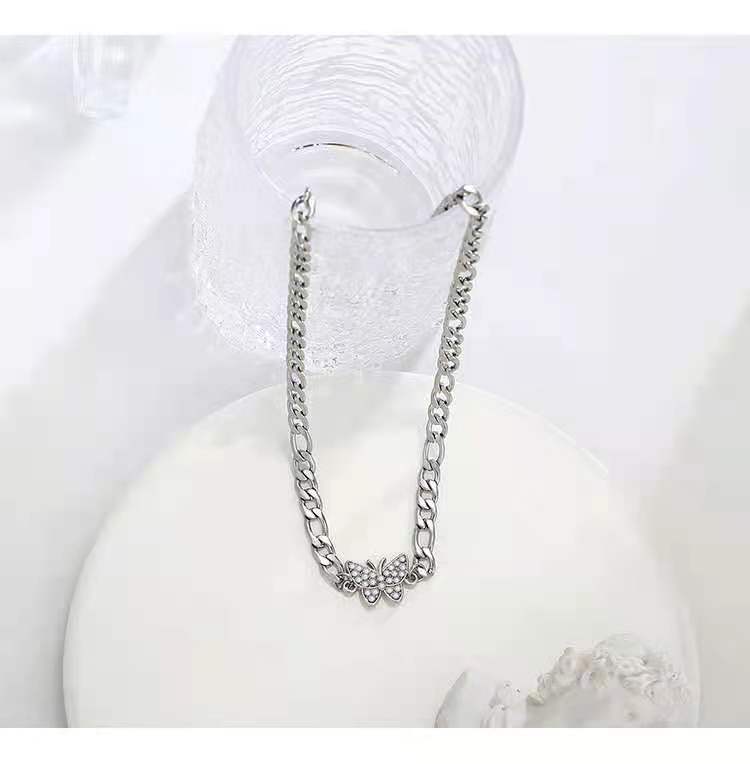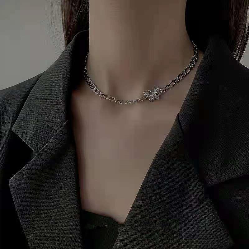 Collar de mariposa con diamantes de acero de titanio para clavícula femenina, diseño de moda, collar con personalidad de celebridades, joyería sencilla para el cuello.