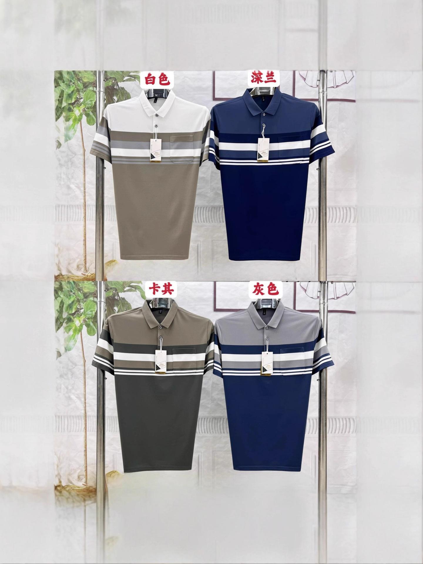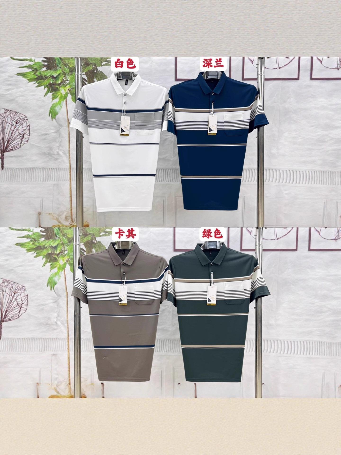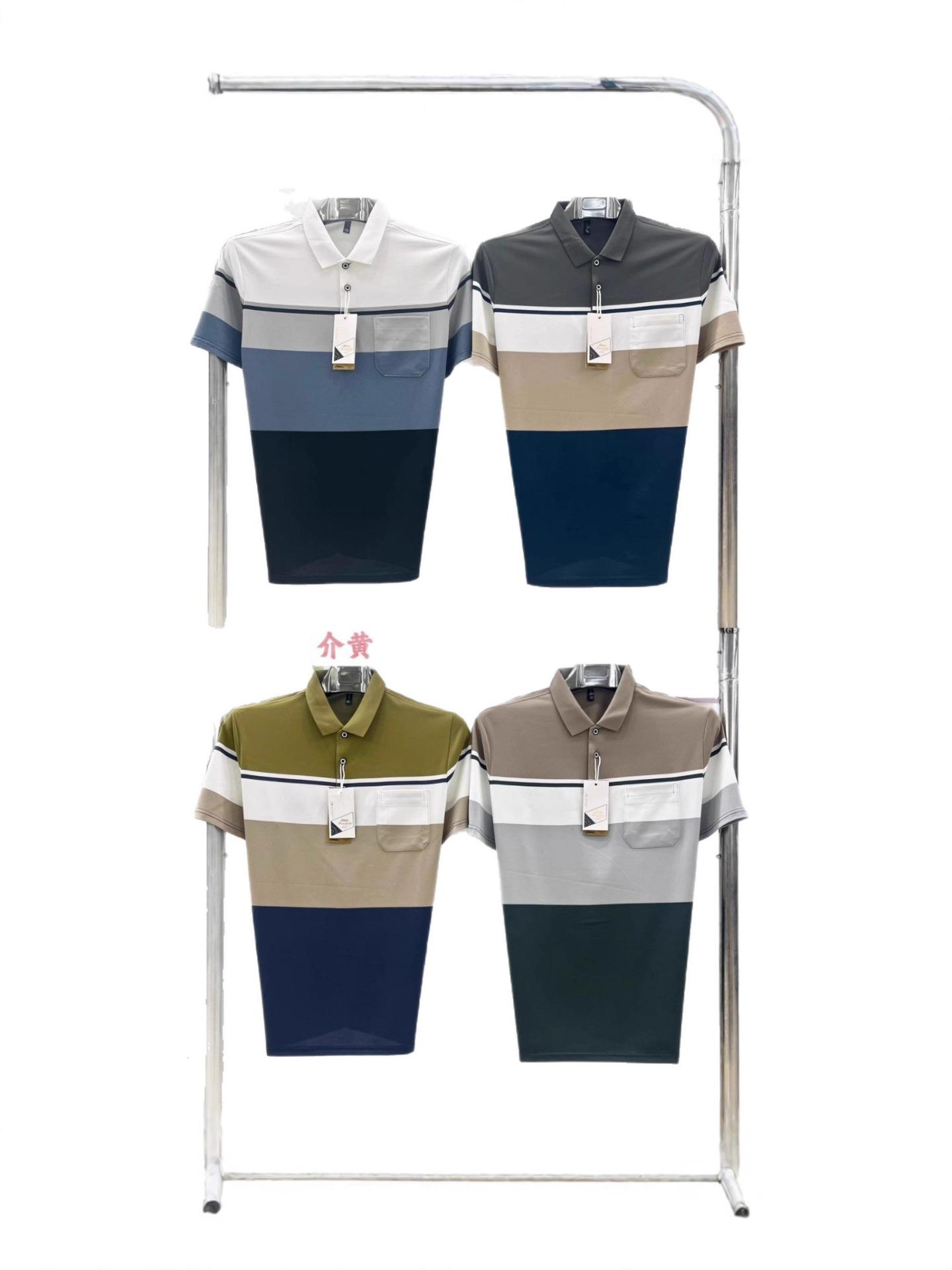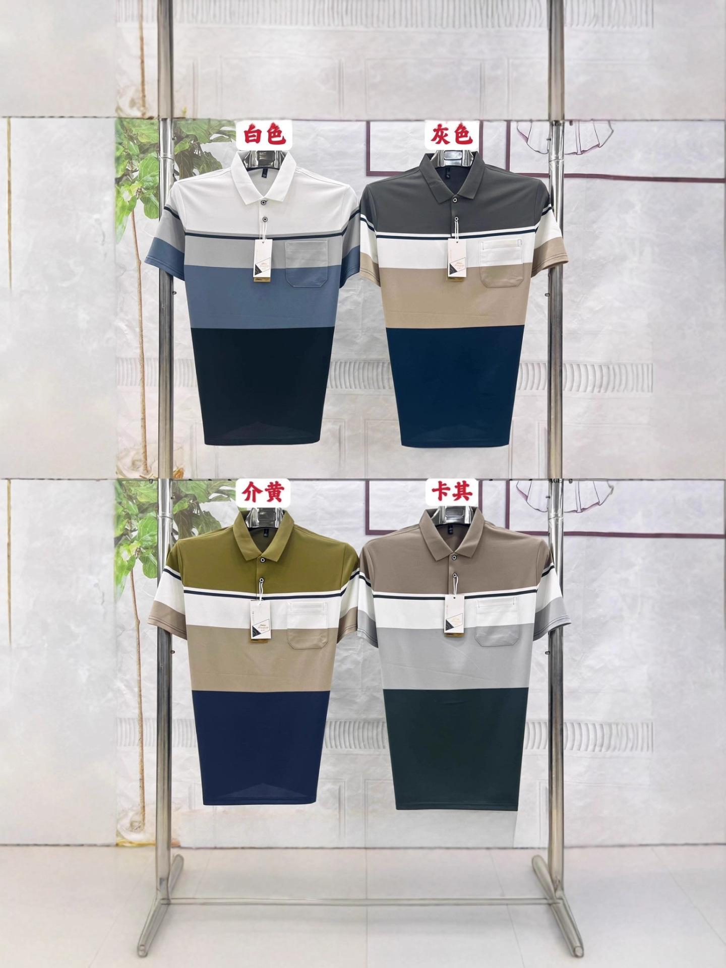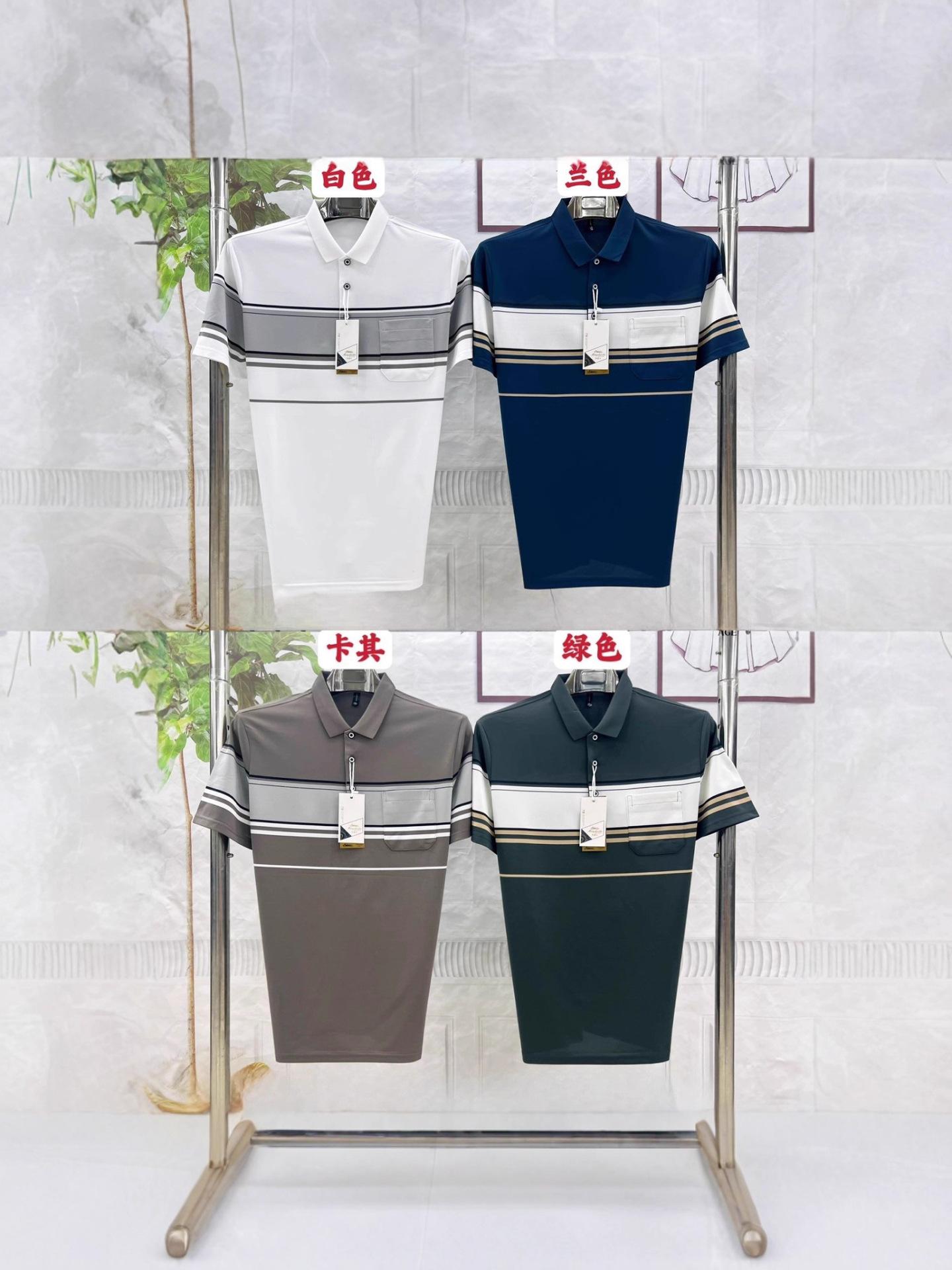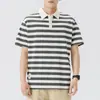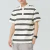2025 Nuevo Verano para Hombre Rayado Manga Corta Camisa Polo Combinación de Colores Moda Casual Top Solapa Delgada Camiseta Fábrica