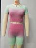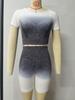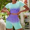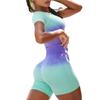 Pantalones Largos Tejidos sin Costuras de Ajuste Ceñido de Manga Corta de Cintura Alta Levanta Caderas para Fitness Correr Deportes Degradado Traje de Yoga para Mujer de Secado Rápido