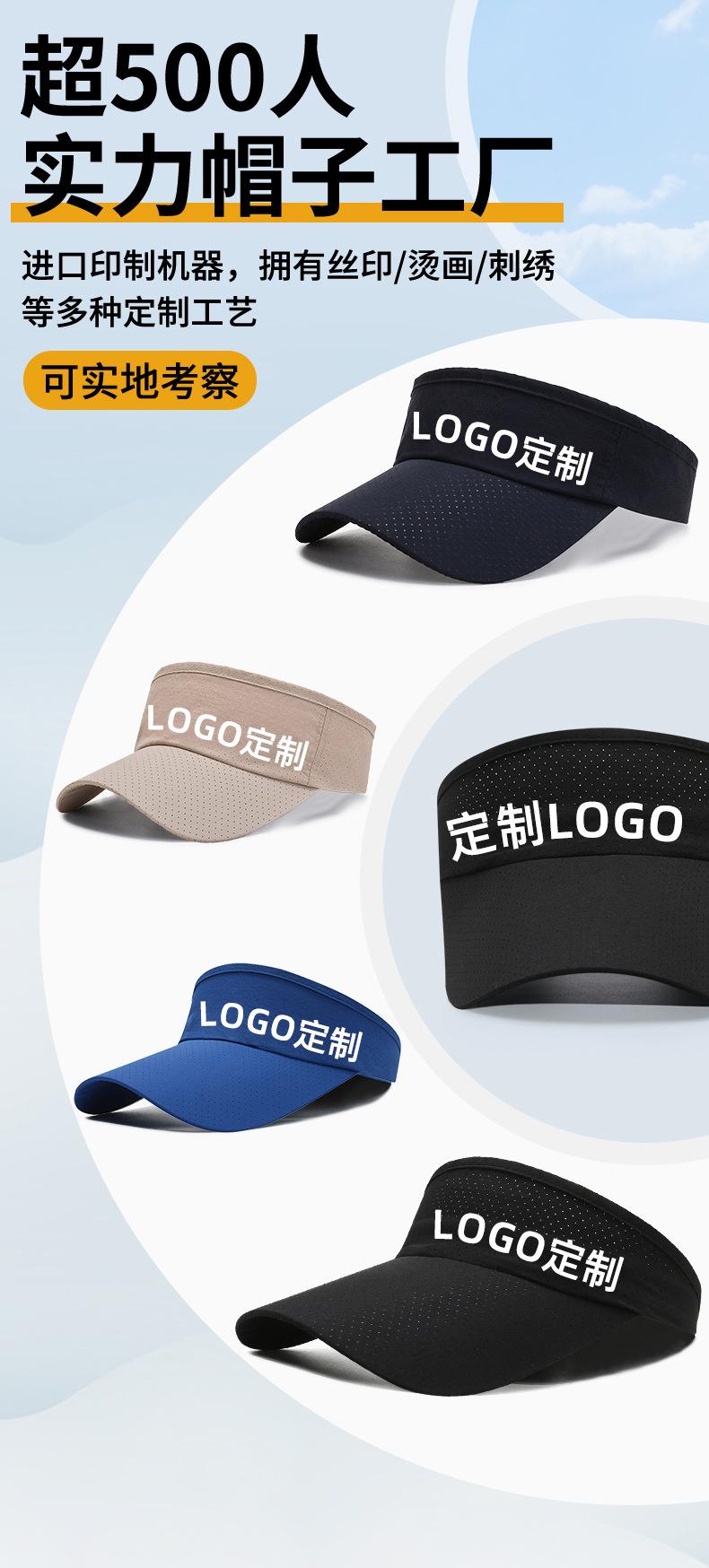 Chapéu de malha de secagem rápida, chapéu alto vazio, impressão de logotipo personalizado, bordado, esportes de corrida, chapéu de sol, chapéu de sol