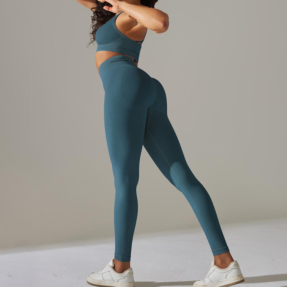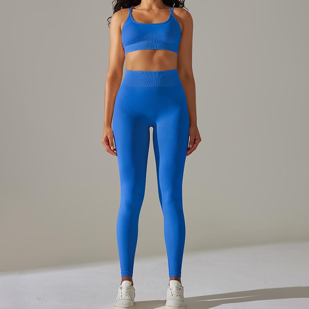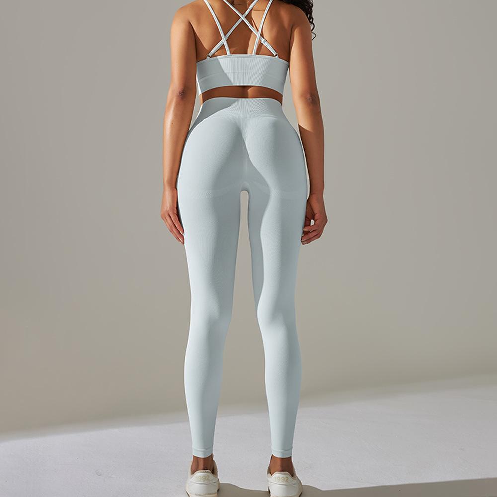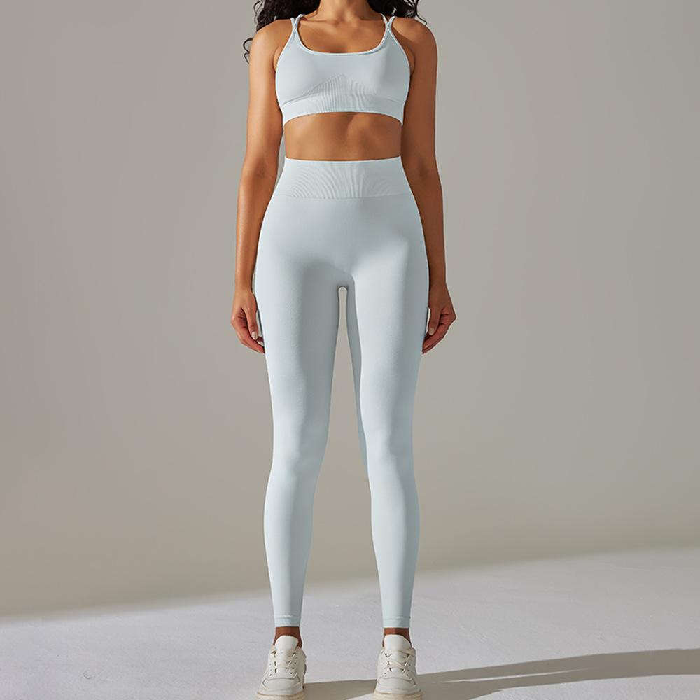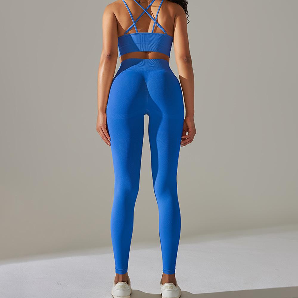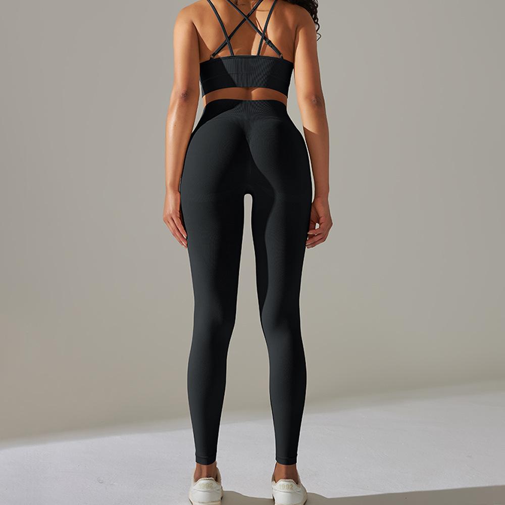 Sujetador Deportivo Cruzado Transfronterizo Europeo y Americano Tejido Espalda Hermosa de Alta Elasticidad Yoga Cruzado Deportes Fitness Pantalones de Yoga Set de Dos Piezas para Mujer