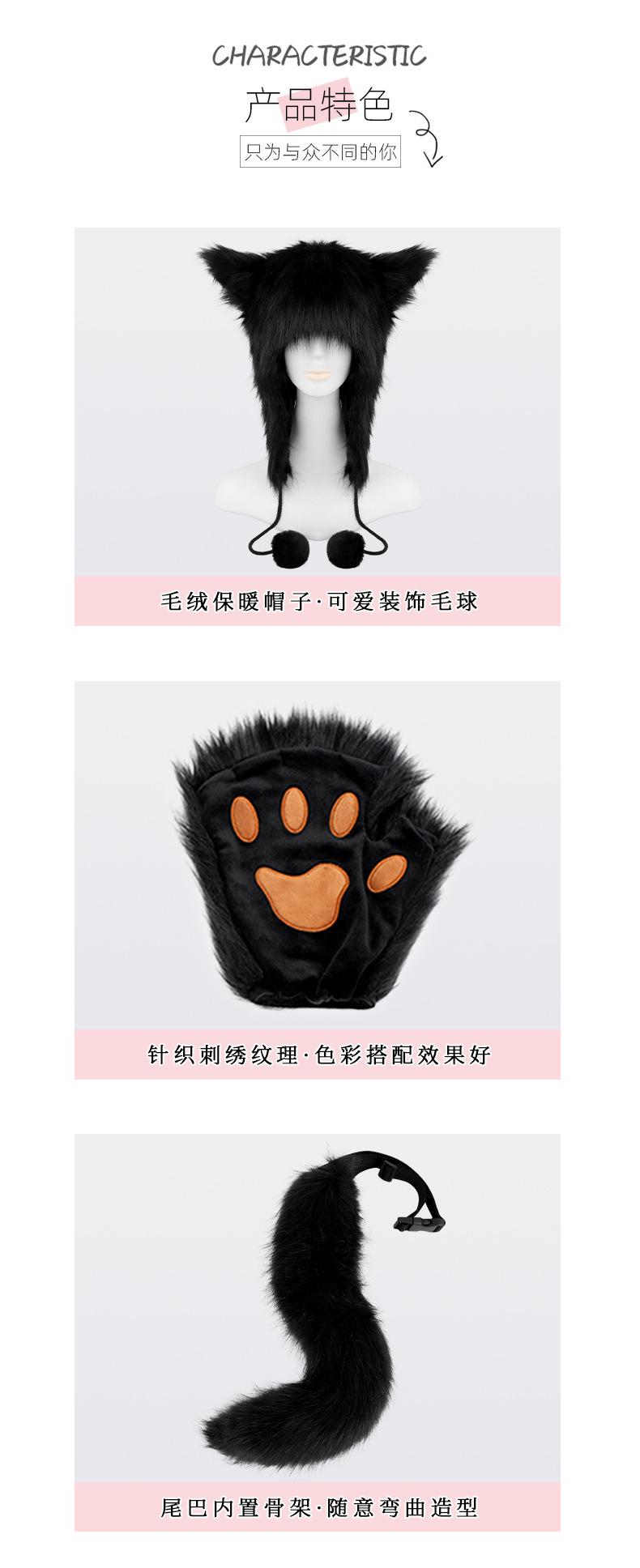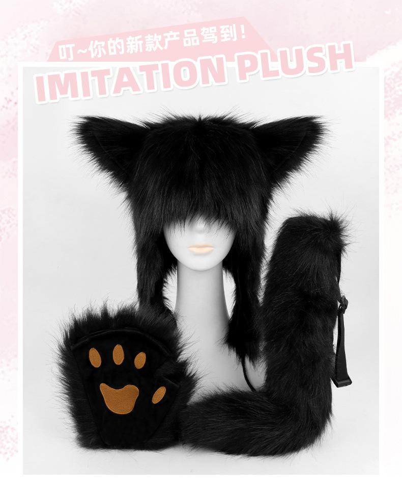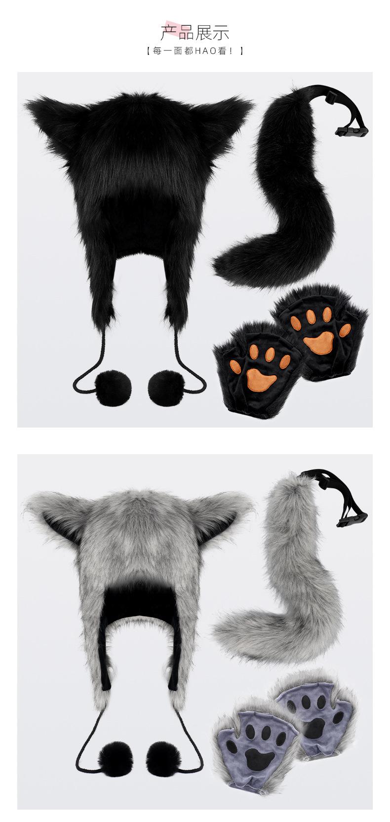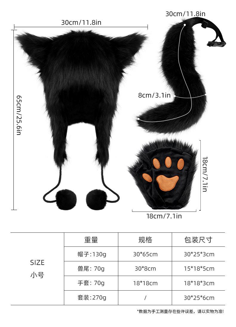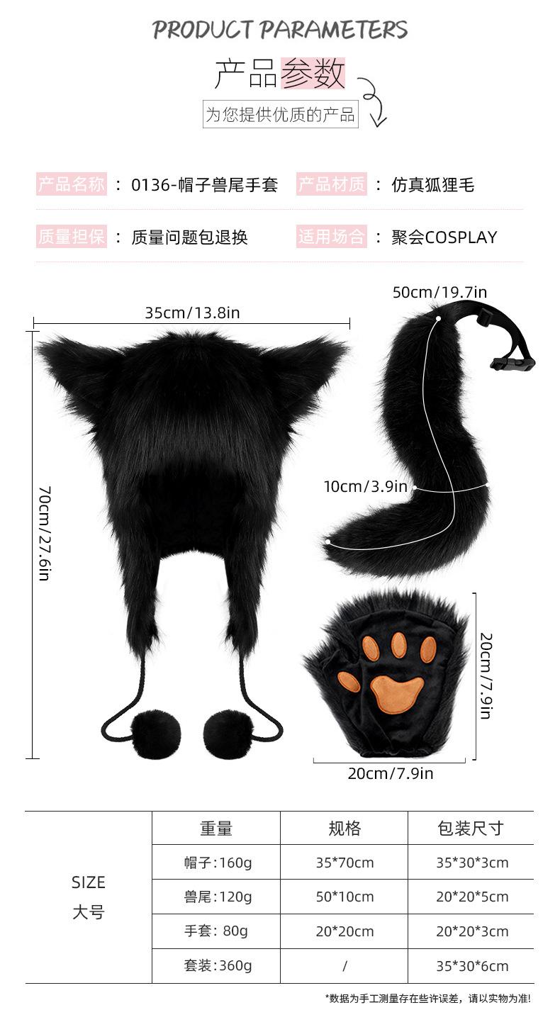 Una generación de gorro de bola de pelo cola de zorro felpa guantes de dedo cosplay accesorios de cola de bestia traje