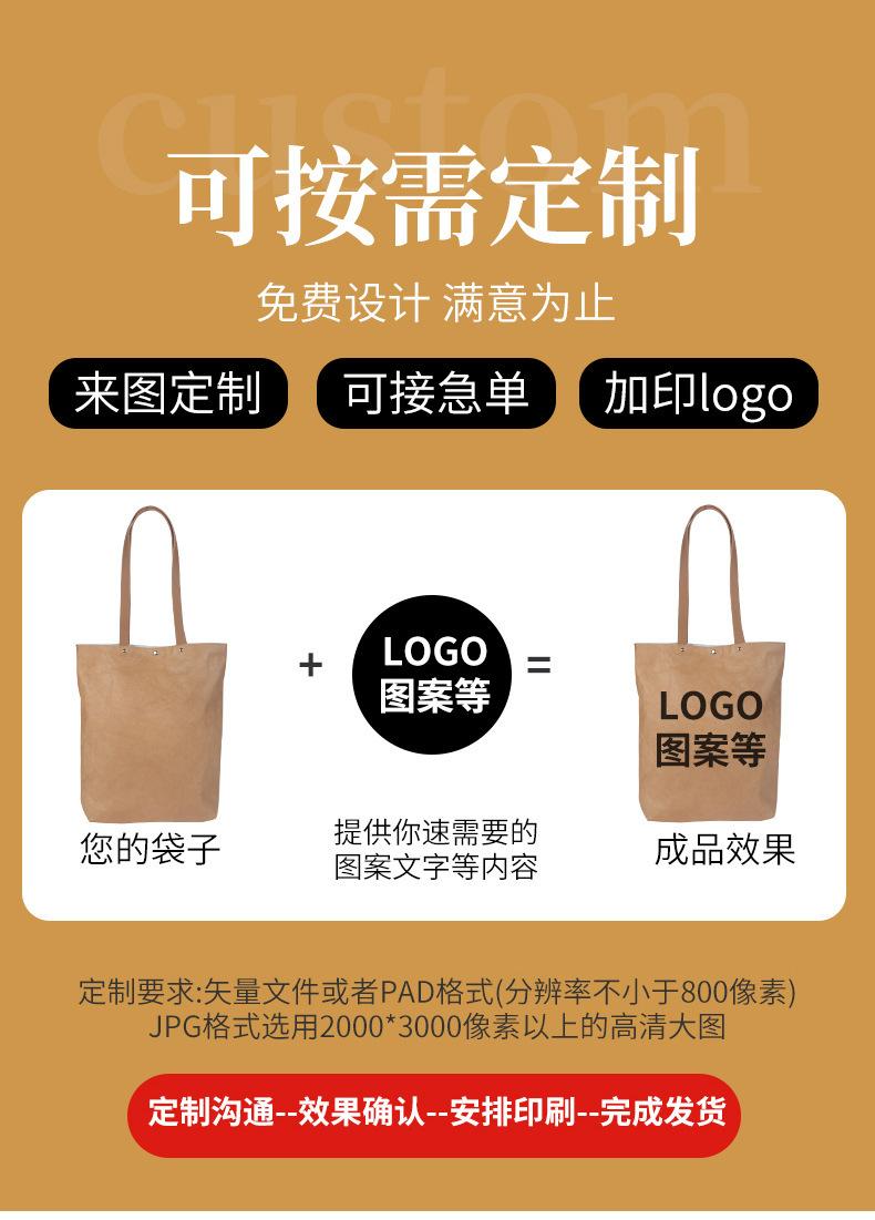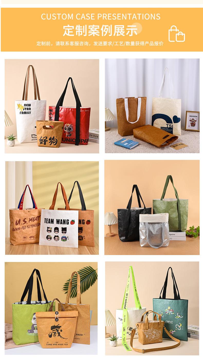 Bolsa de Papel Dupont Logo Personalizado Lavable Bolsa de Papel Kraft Bolsa de Embalaje para Regalo Bolsa Tote Bolsa de Compras para Regalo Personalización