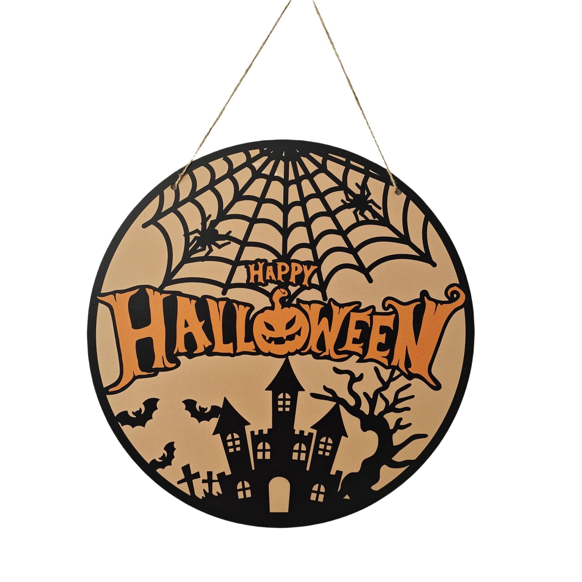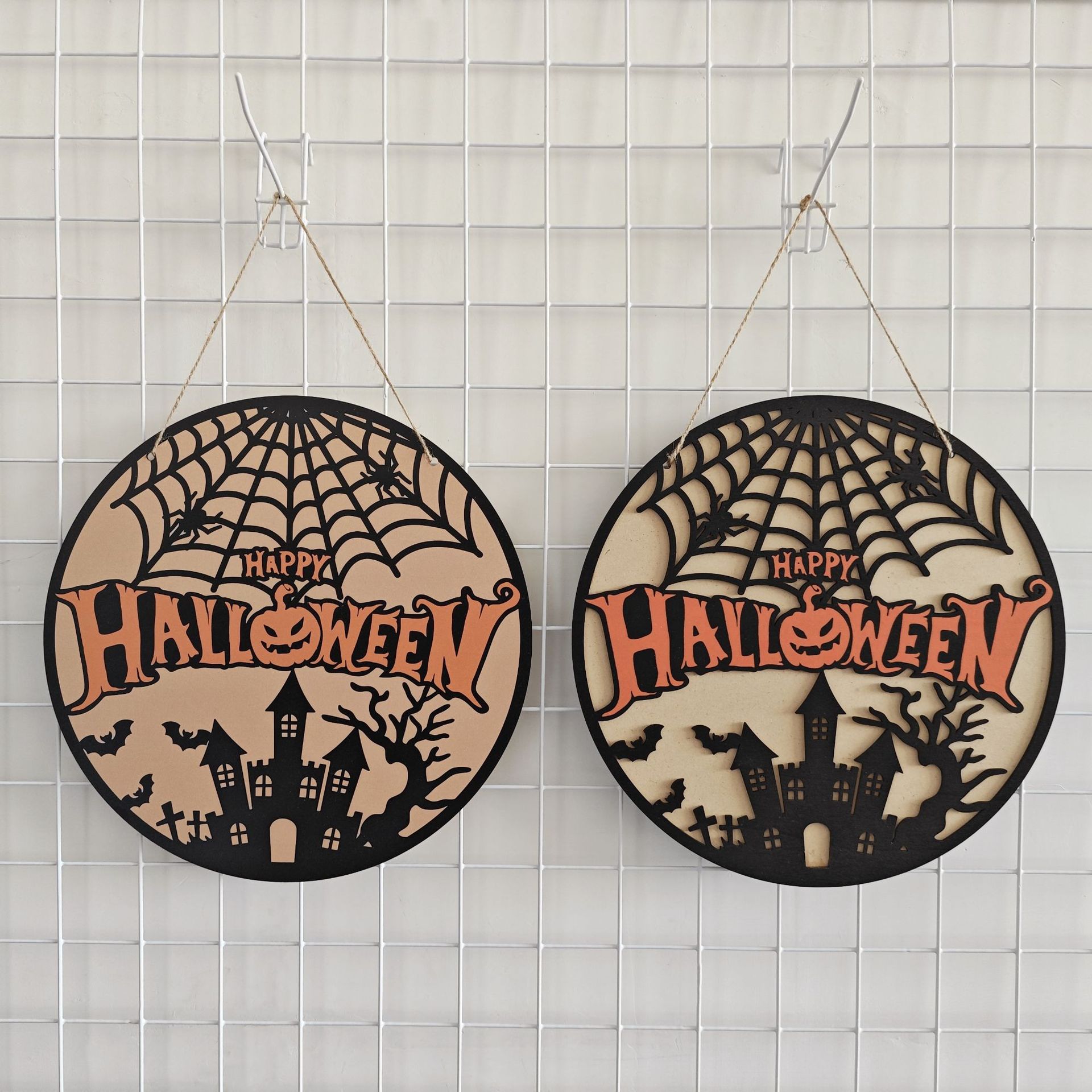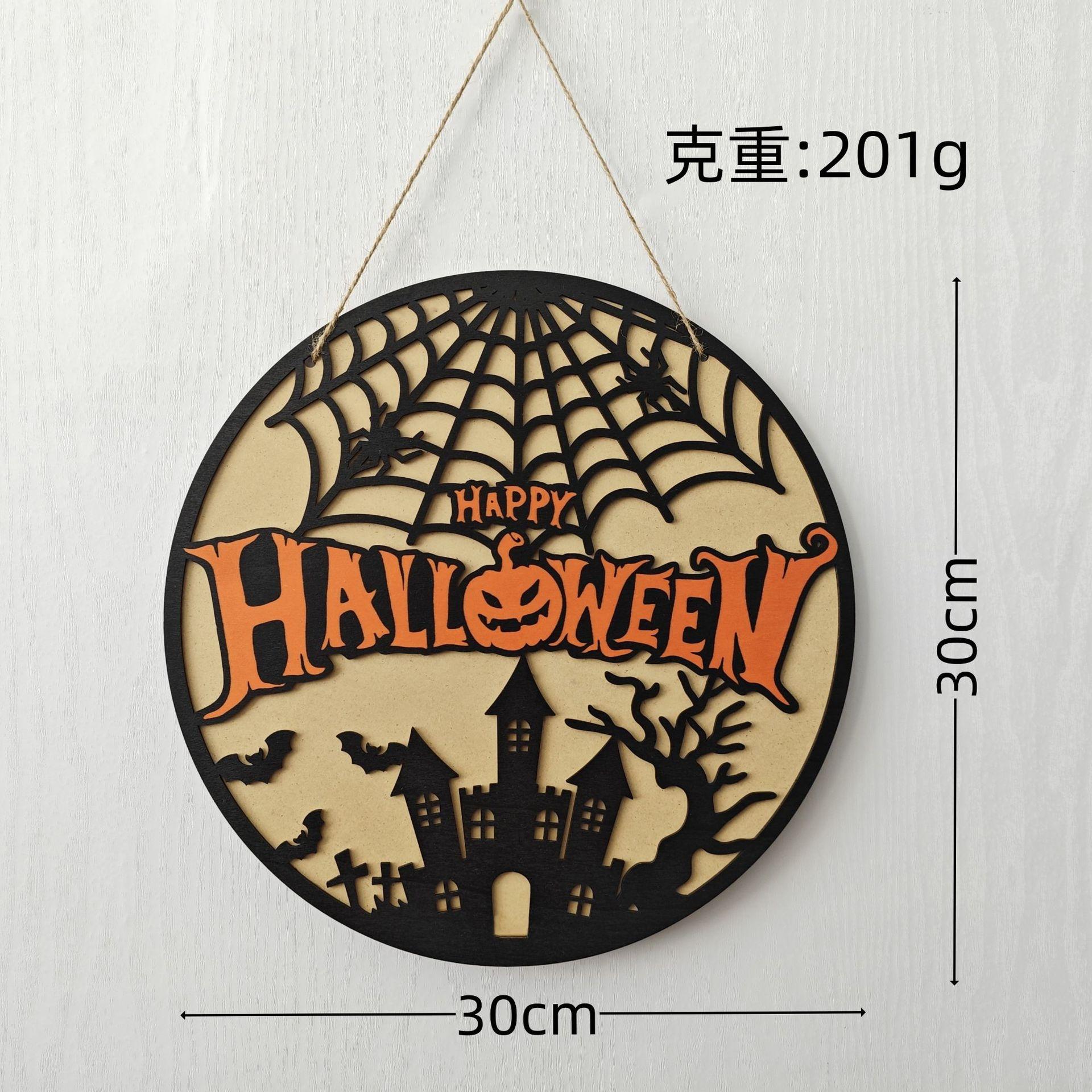 Halloween Nuevo Producto Transfronterizo Letrero Decorativo para Puerta Madera Estéreo Decoración de Patio para Fiesta Colgante Redondo de Halloween