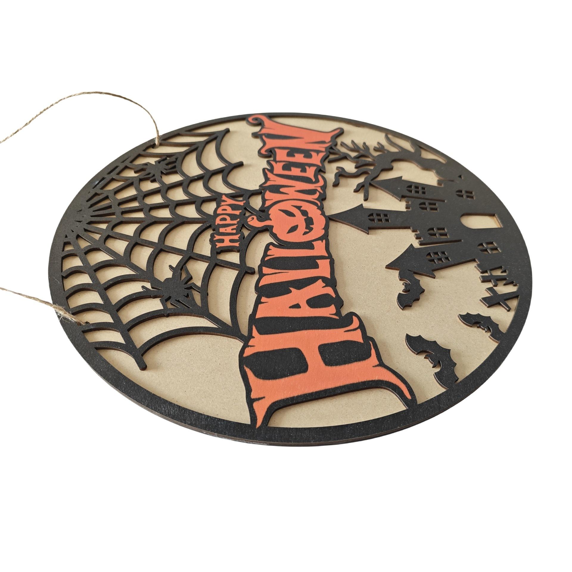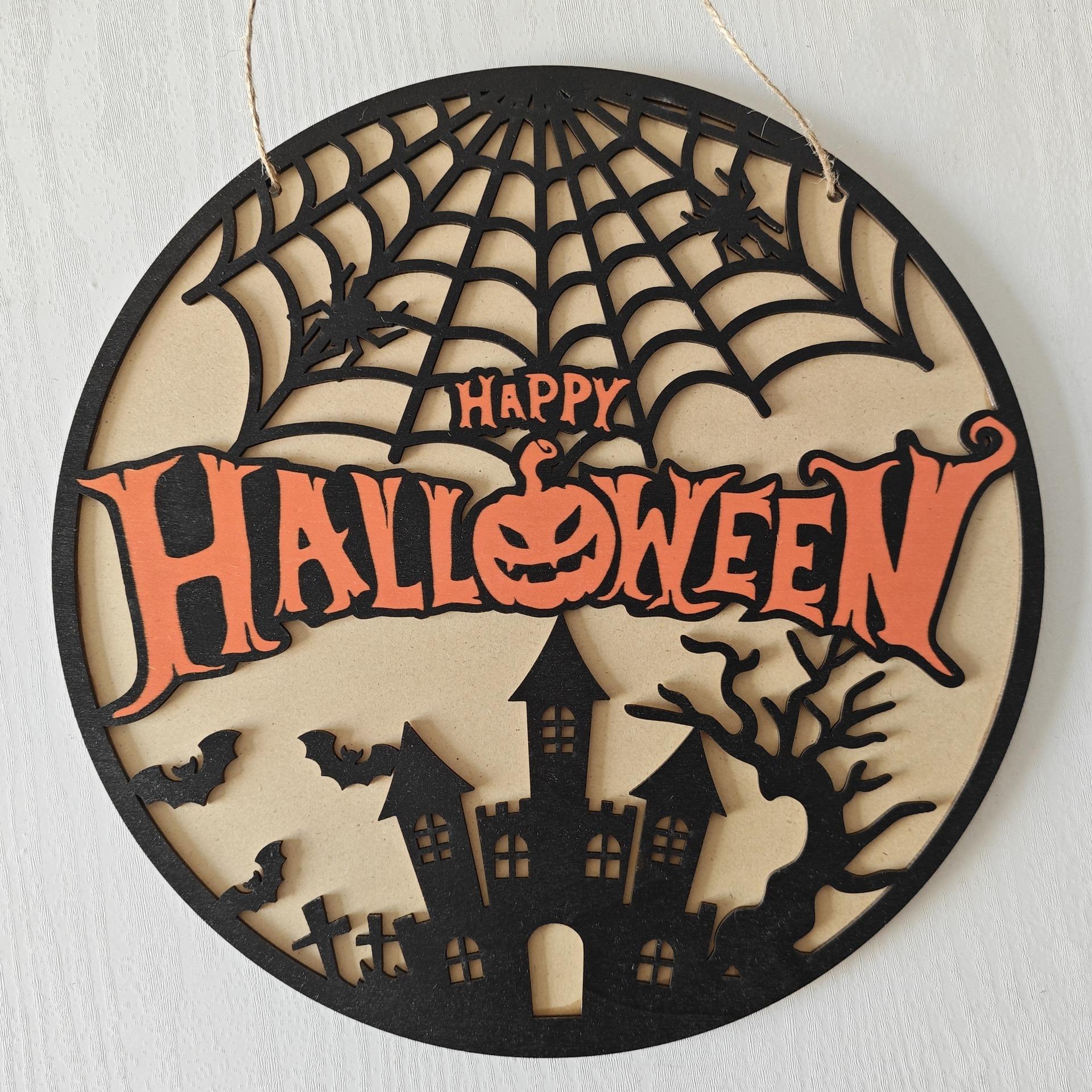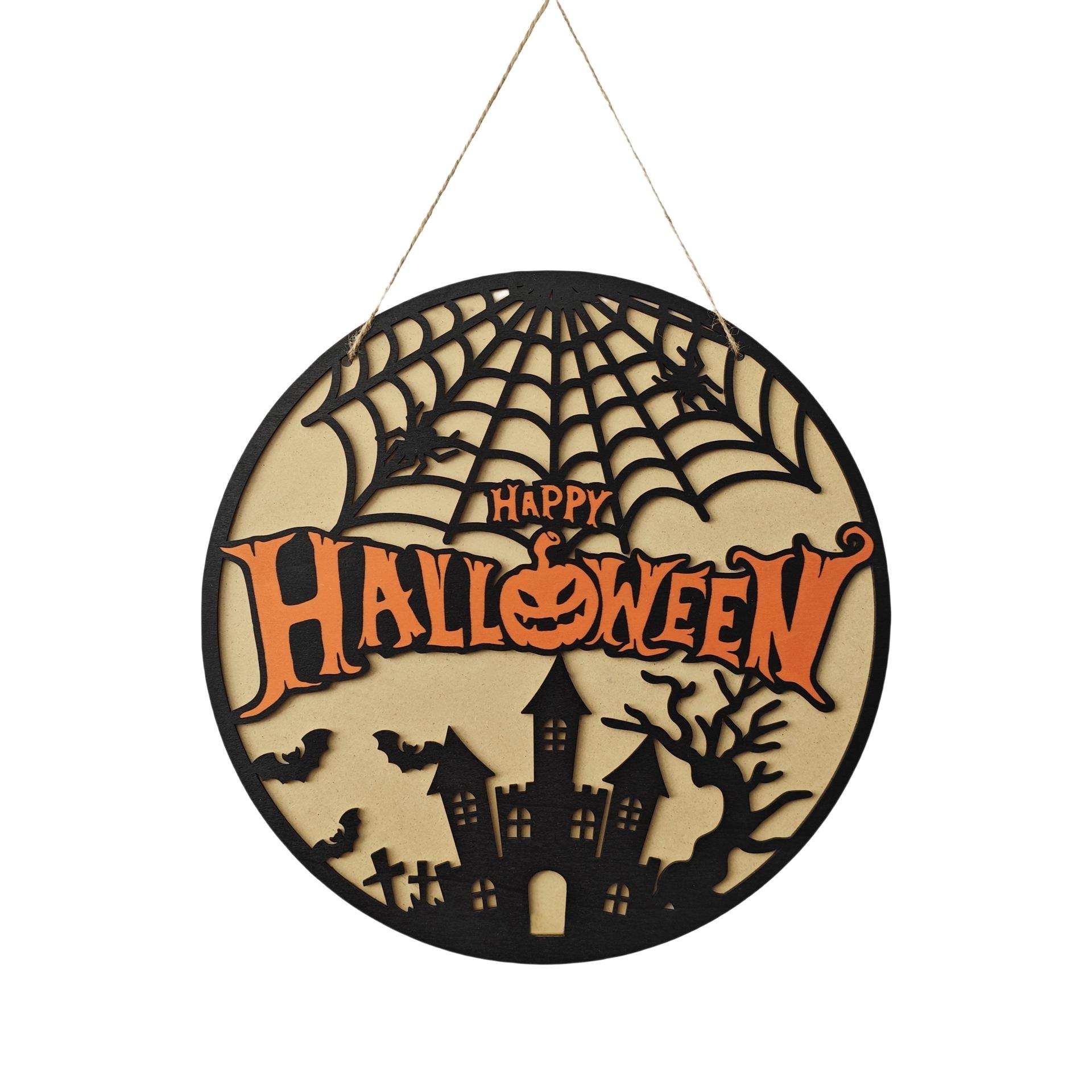 Halloween Nuevo Producto Transfronterizo Letrero Decorativo para Puerta Madera Estéreo Decoración de Patio para Fiesta Colgante Redondo de Halloween