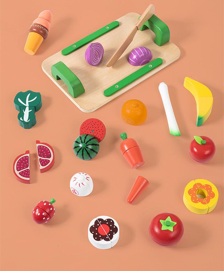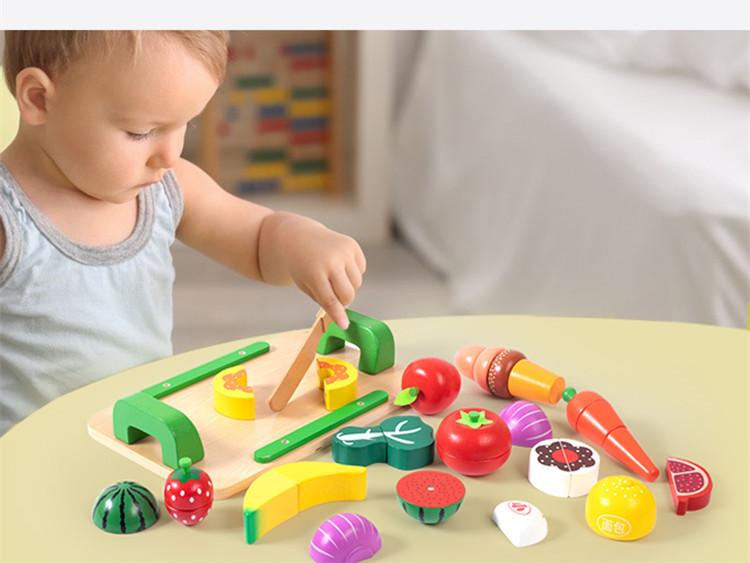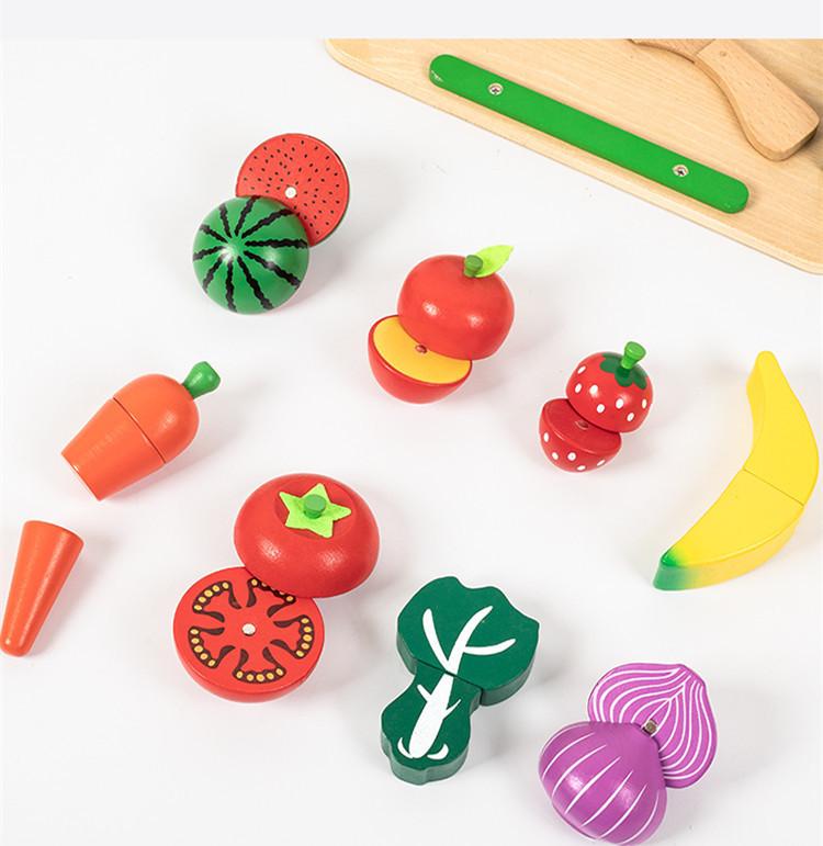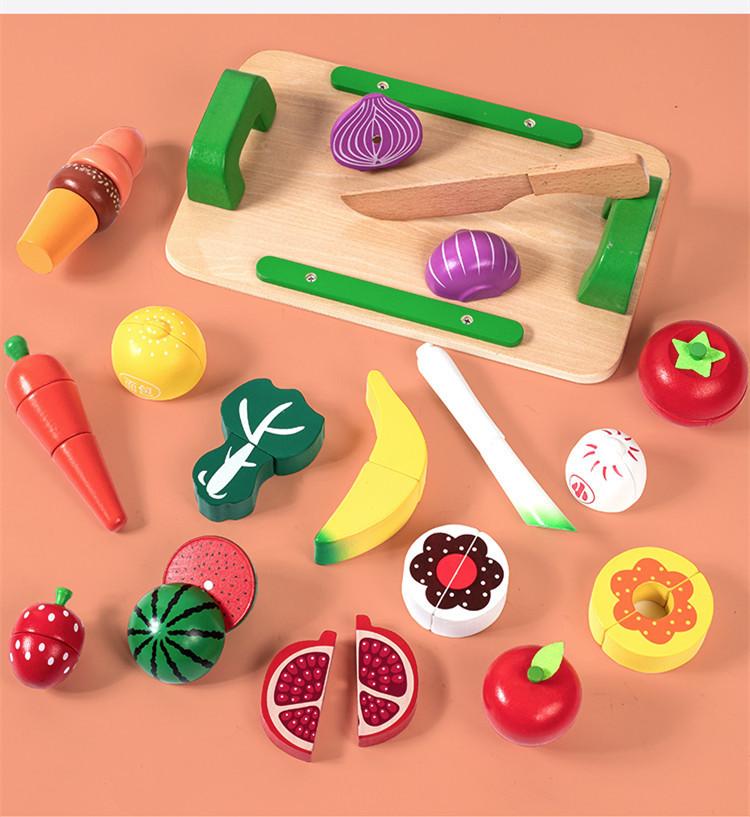 Juego de Frutas y Verduras de Madera de Simulación para Niños Transfronterizos para Cortar y Cesta de Frutas, Casa de Juego, Cocina, Juguetes Cognitivos de Educación Temprana