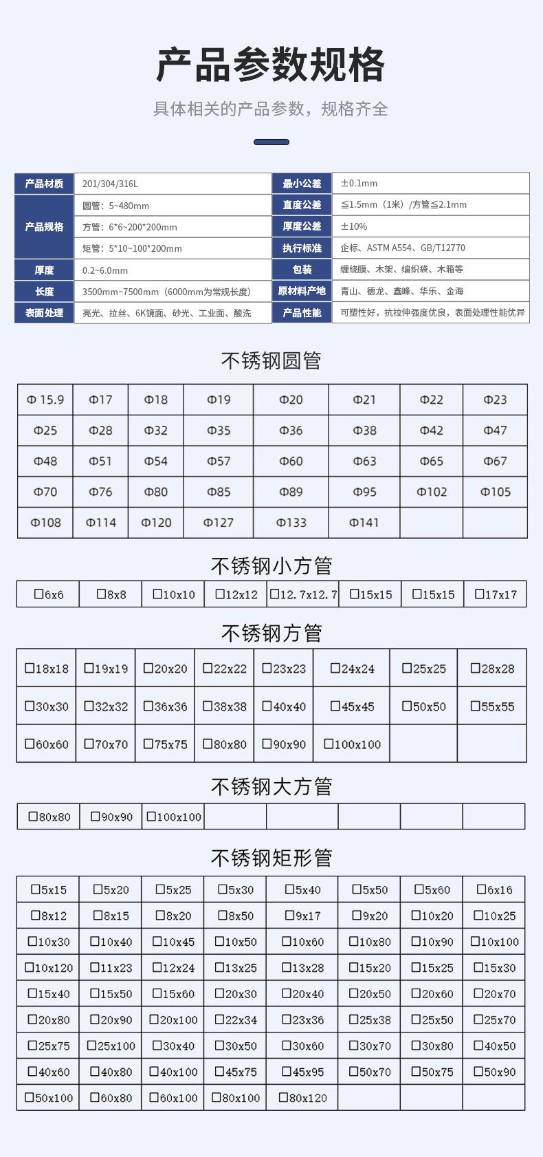 201/304/316 specifications are complete, please consult customer service for details, Ф25, Ф32, Ф38, Ф51, 304/...