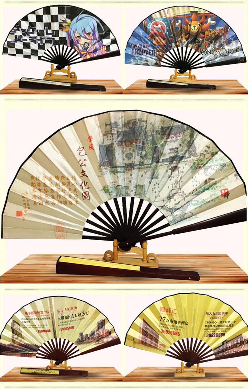 Abanico Publicitario Estilo Chino con Logotipo de Procesamiento Personalizado del Fabricante Abanico de Bambú Plegable de Papel de Arroz de Seda Creación de Caligrafía Abanico de Regalo