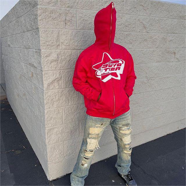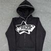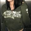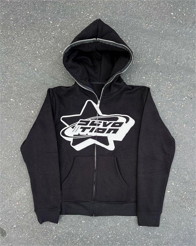 Suéter holgado de moda urbana estadounidense de 2023 con capucha, manga larga, cremallera superior, personalidad, estampado de letras informal