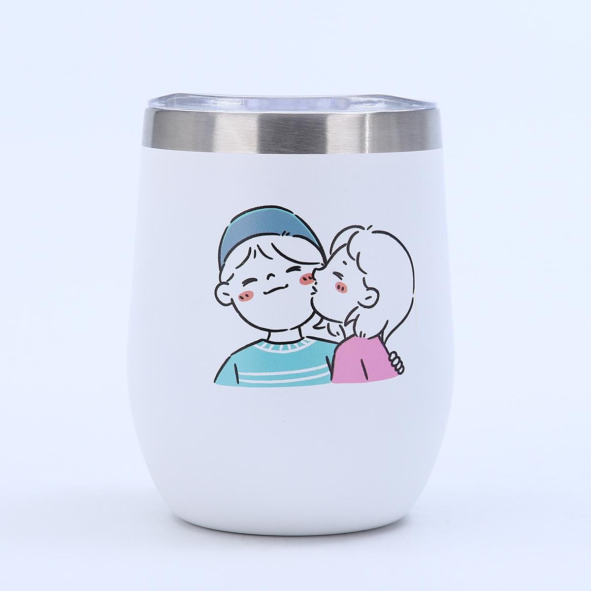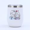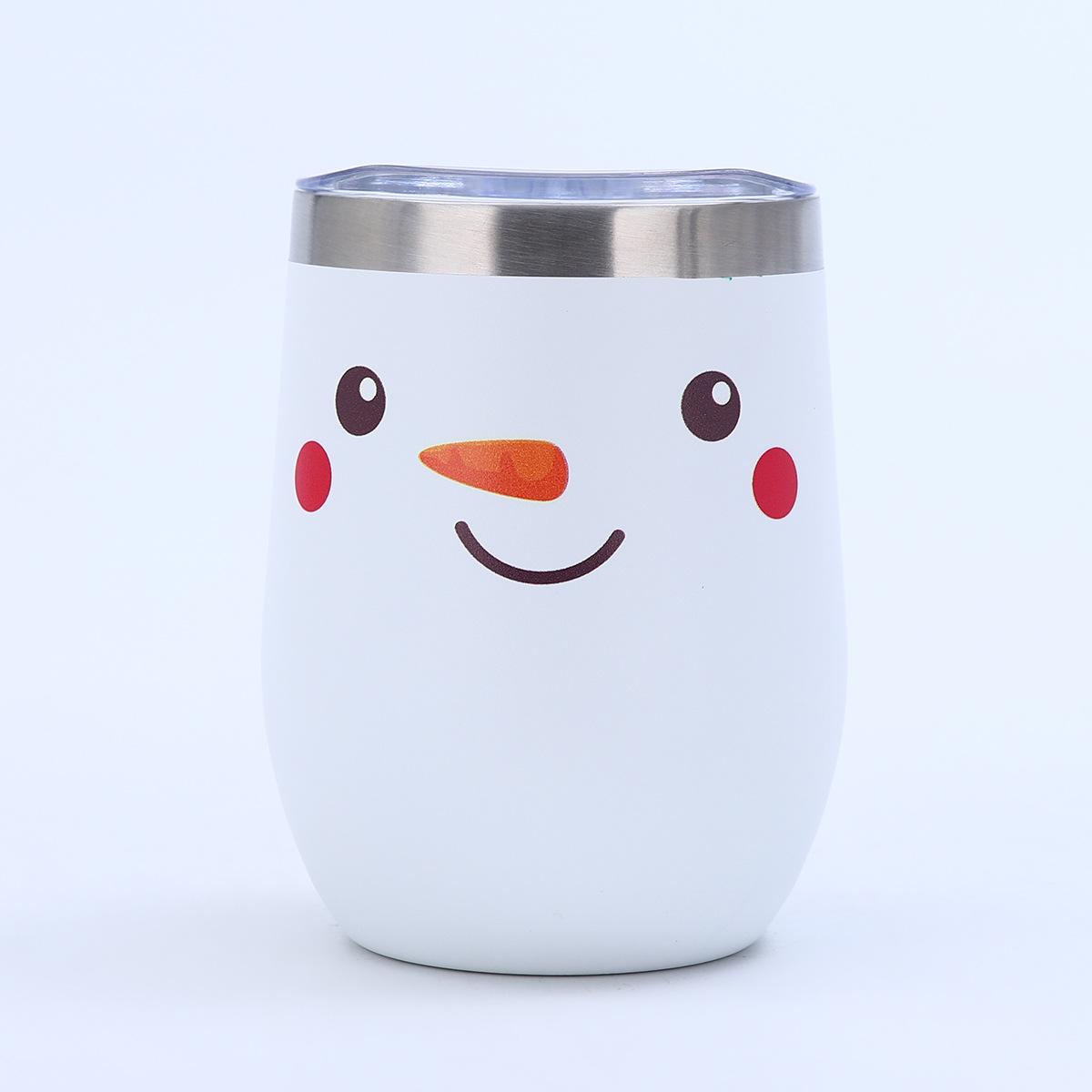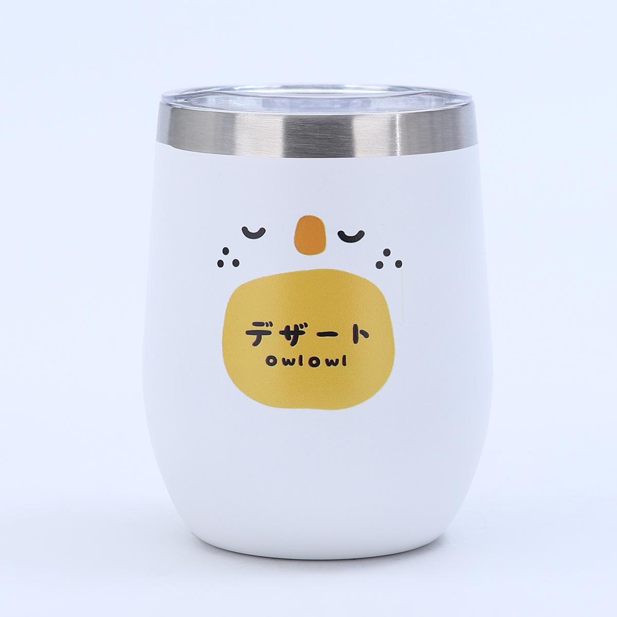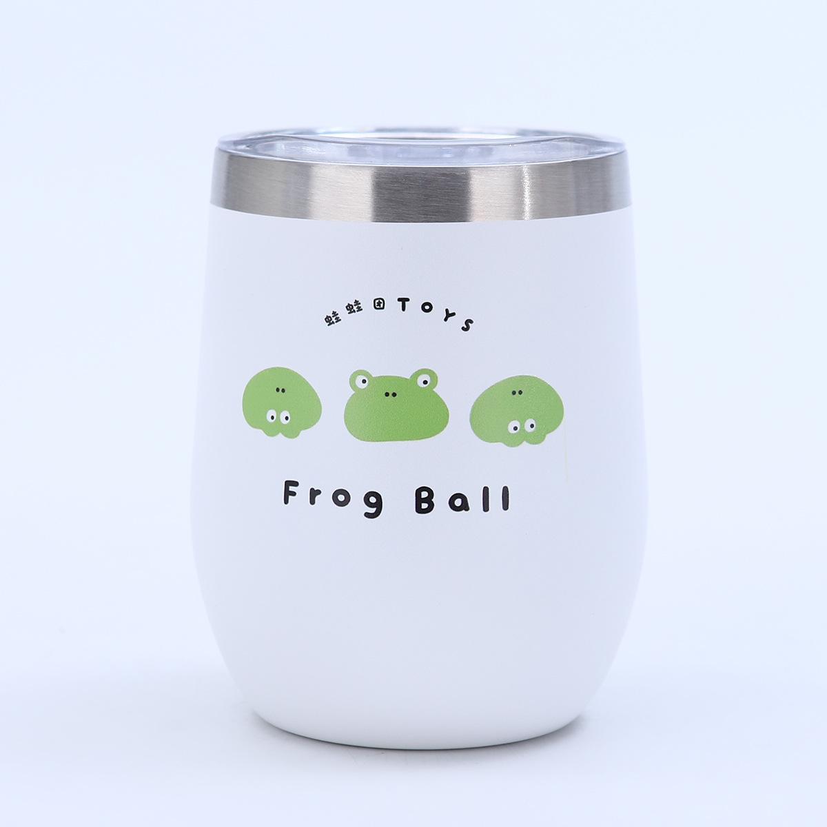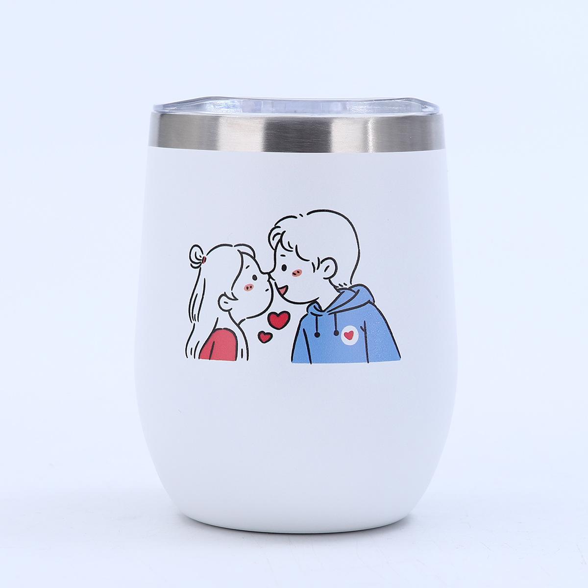 Taza de cáscara de huevo impresa con explosiones transfronterizas, taza de vino tinto de acero inoxidable 304, taza de huevo en forma de U al vacío de 12 oz con tapa, al por mayor