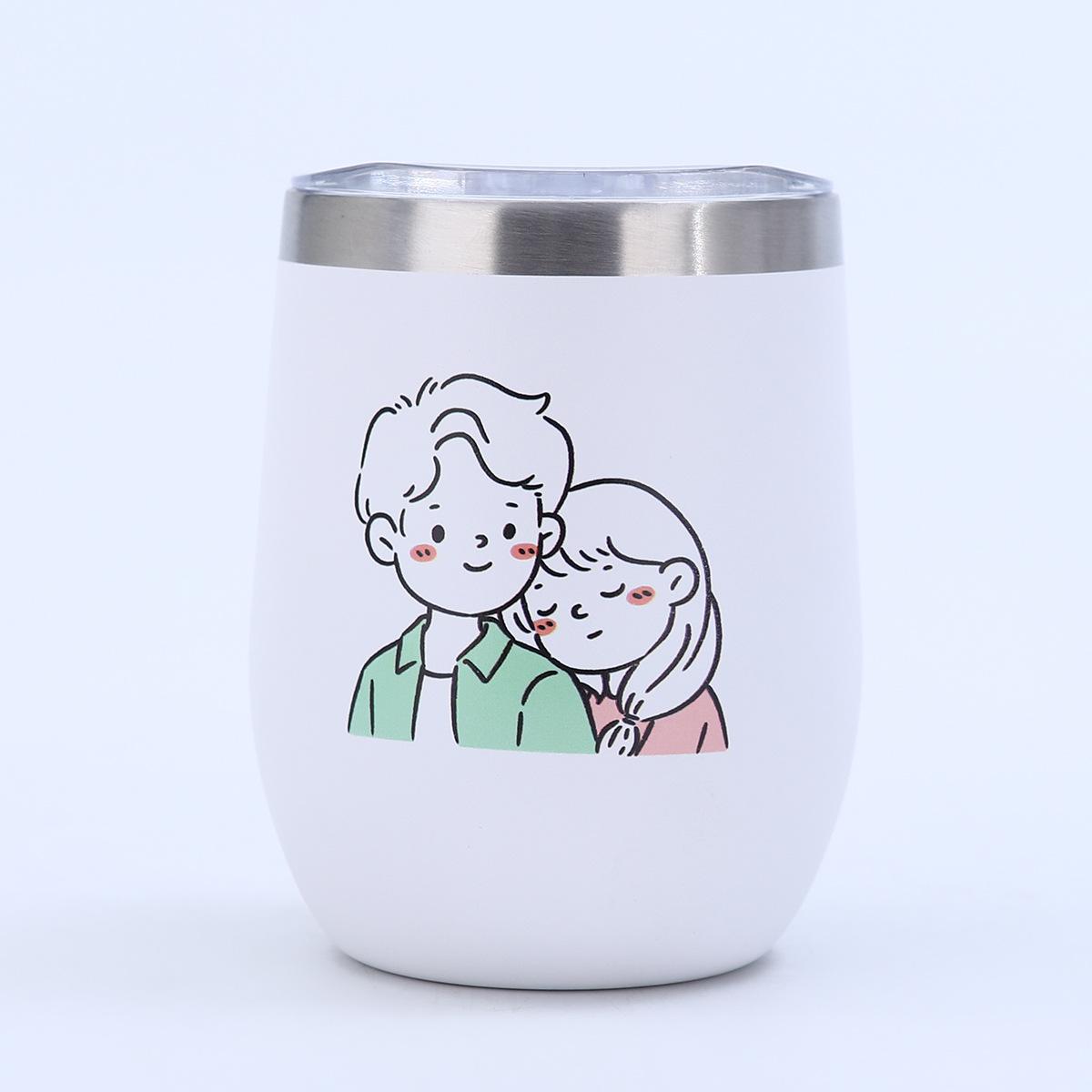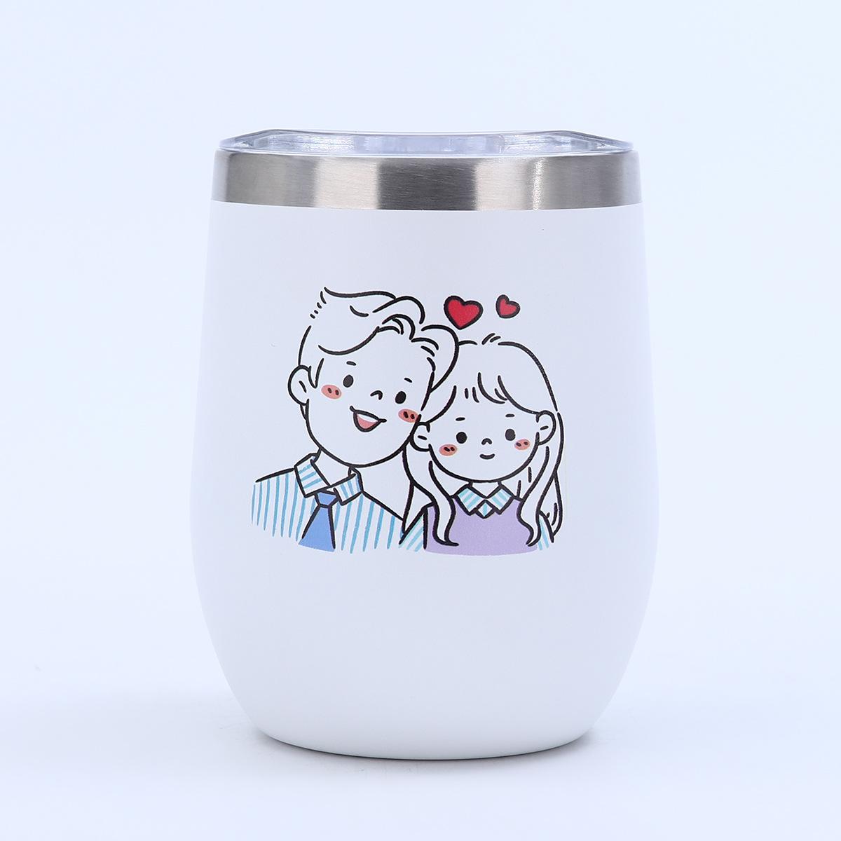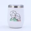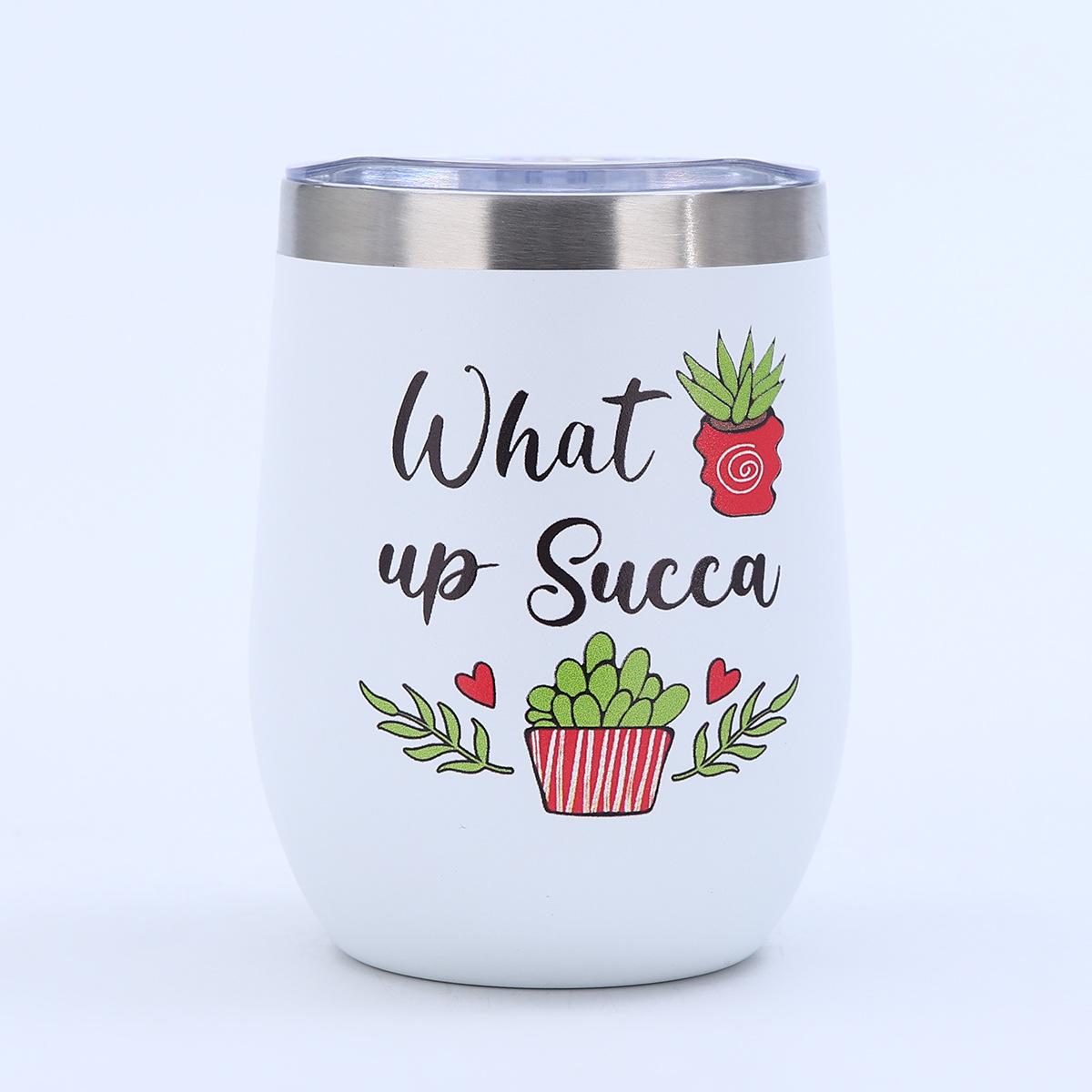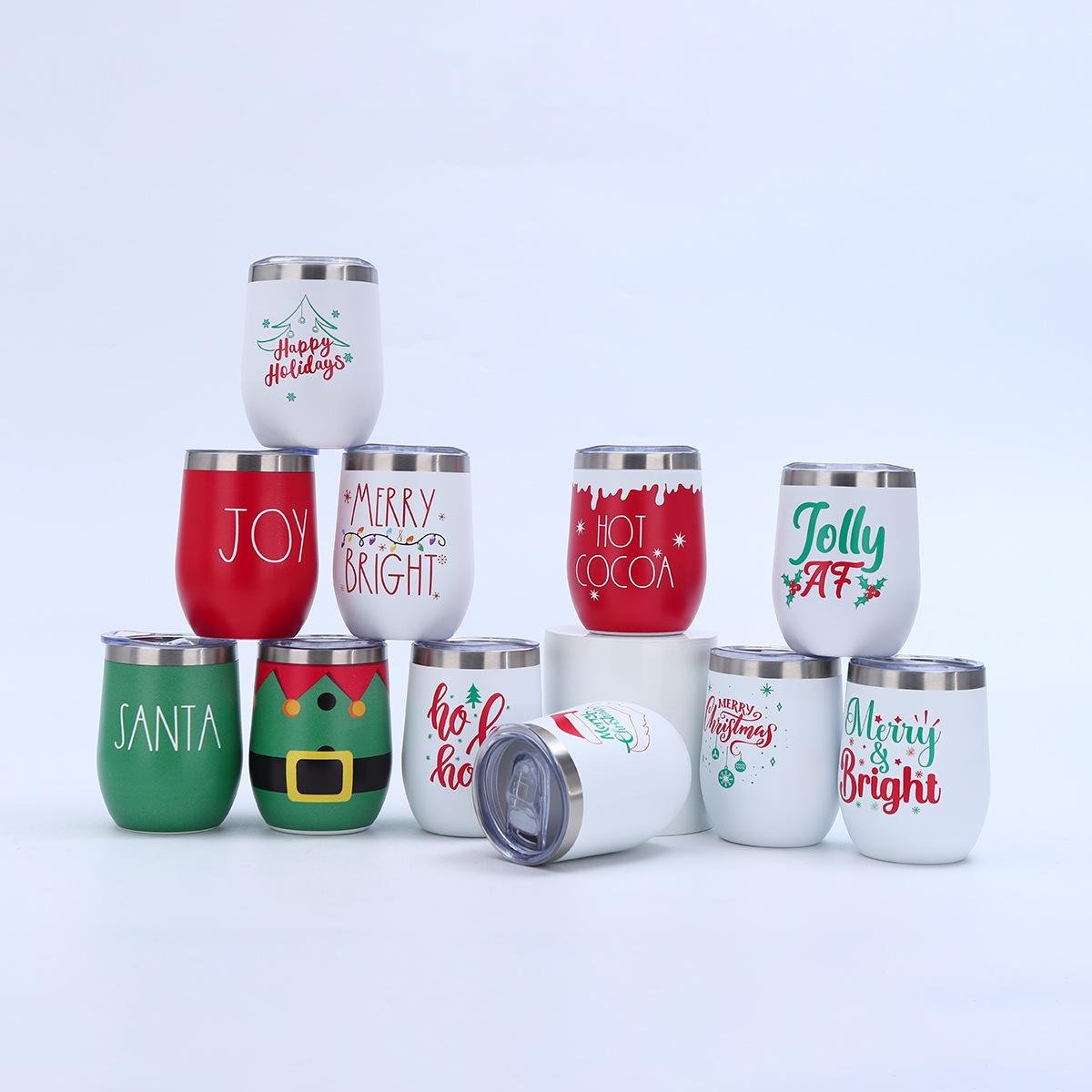 Taza de cáscara de huevo impresa con explosiones transfronterizas, taza de vino tinto de acero inoxidable 304, taza de huevo en forma de U al vacío de 12 oz con tapa, al por mayor