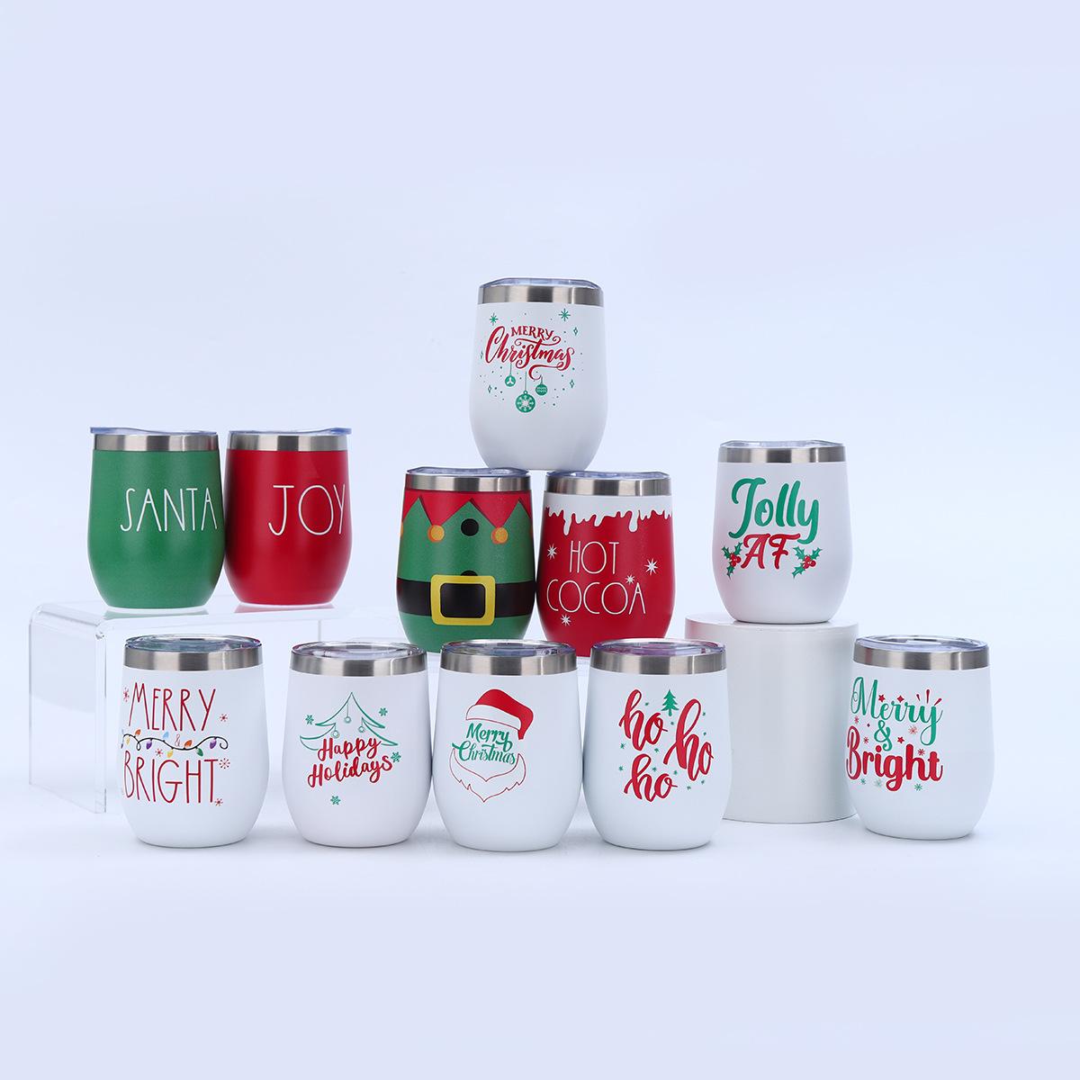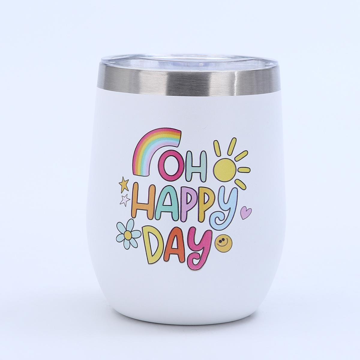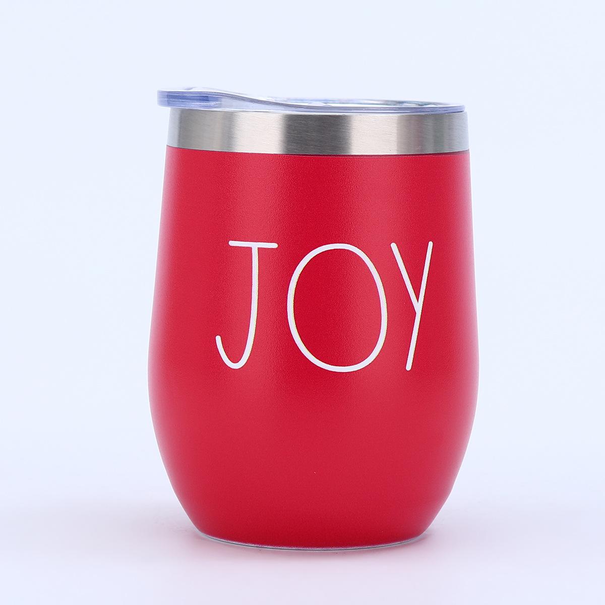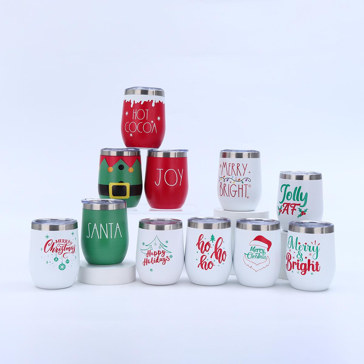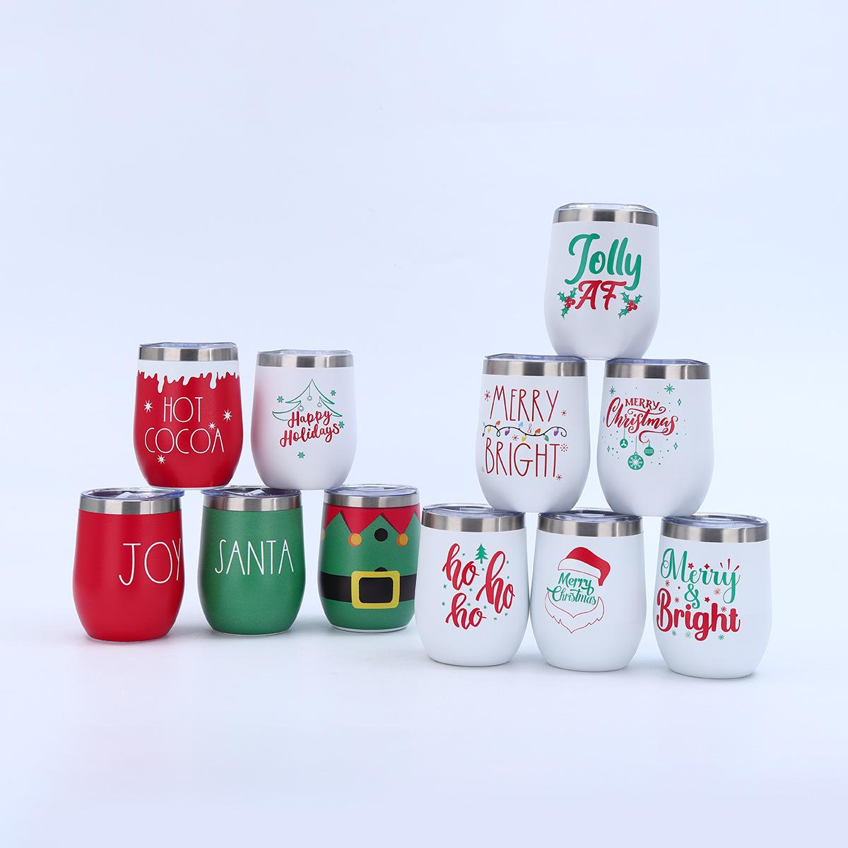 Taza de cáscara de huevo impresa con explosiones transfronterizas, taza de vino tinto de acero inoxidable 304, taza de huevo en forma de U al vacío de 12 oz con tapa, al por mayor