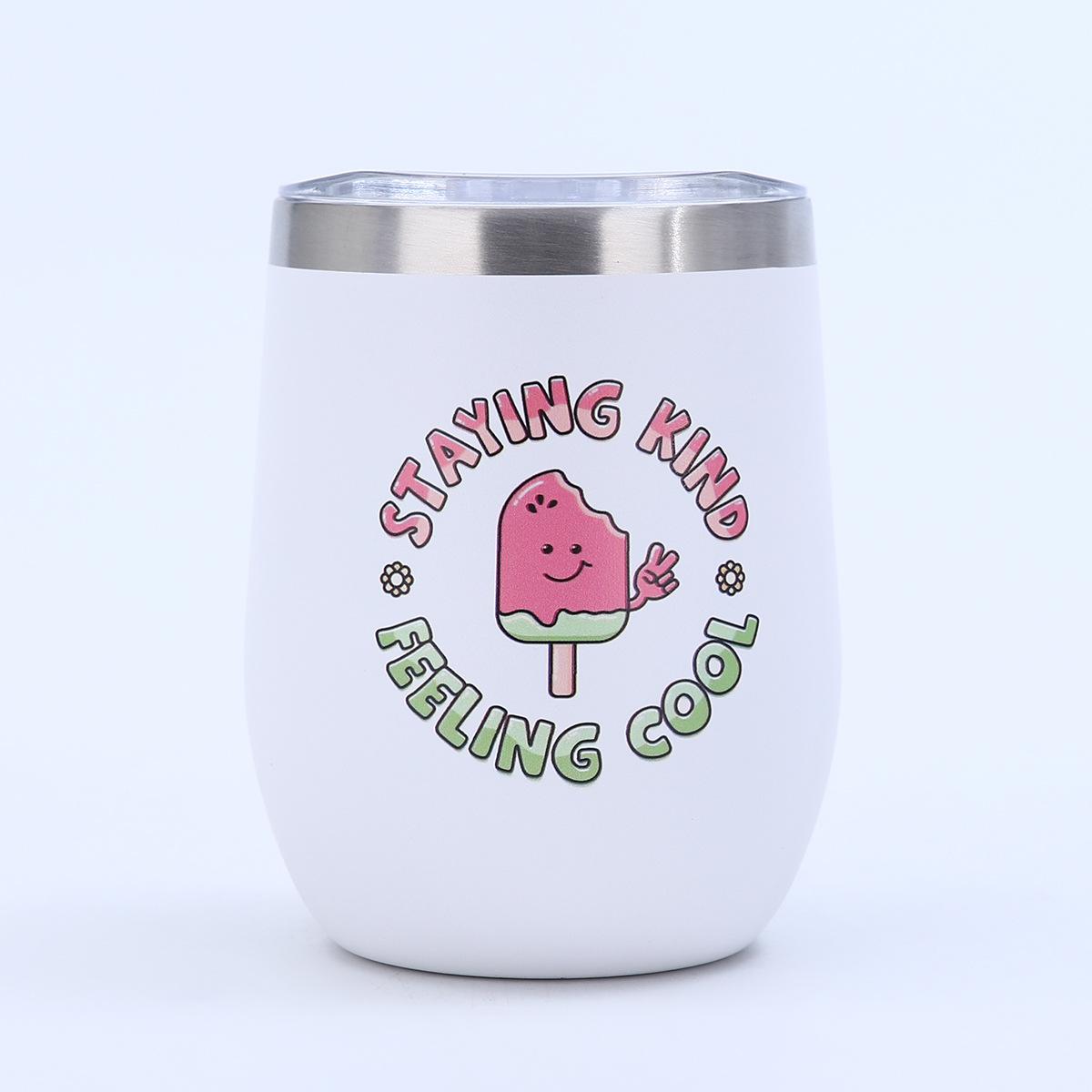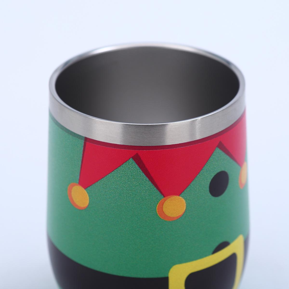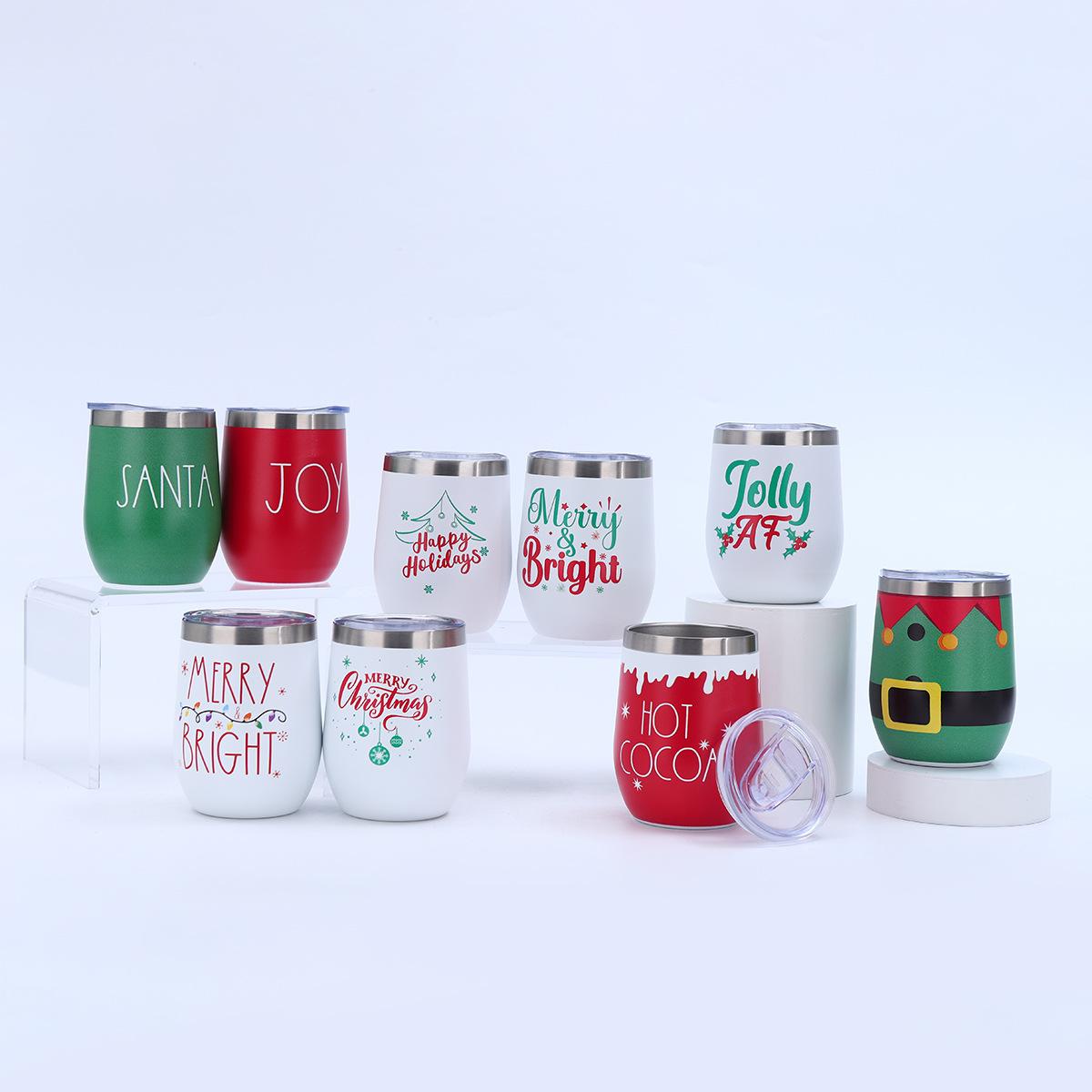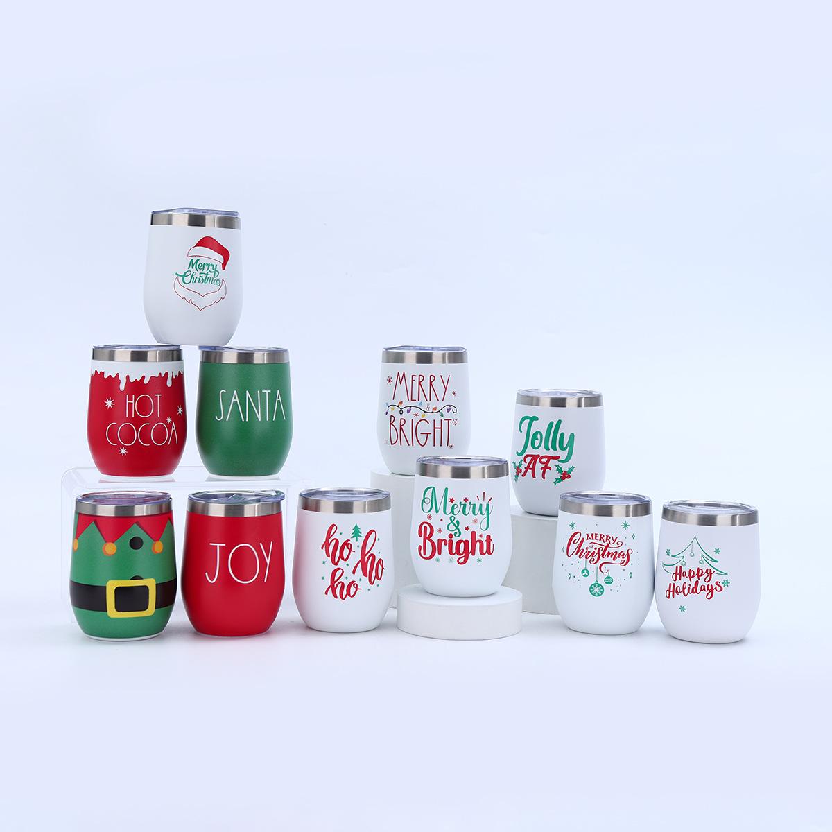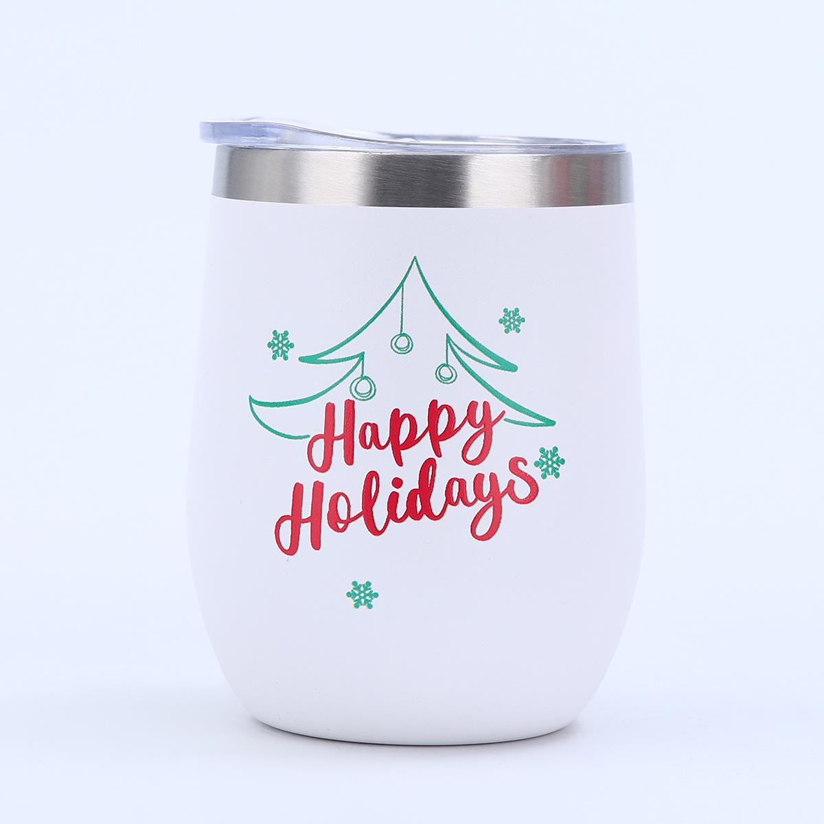 Taza de cáscara de huevo impresa con explosiones transfronterizas, taza de vino tinto de acero inoxidable 304, taza de huevo en forma de U al vacío de 12 oz con tapa, al por mayor