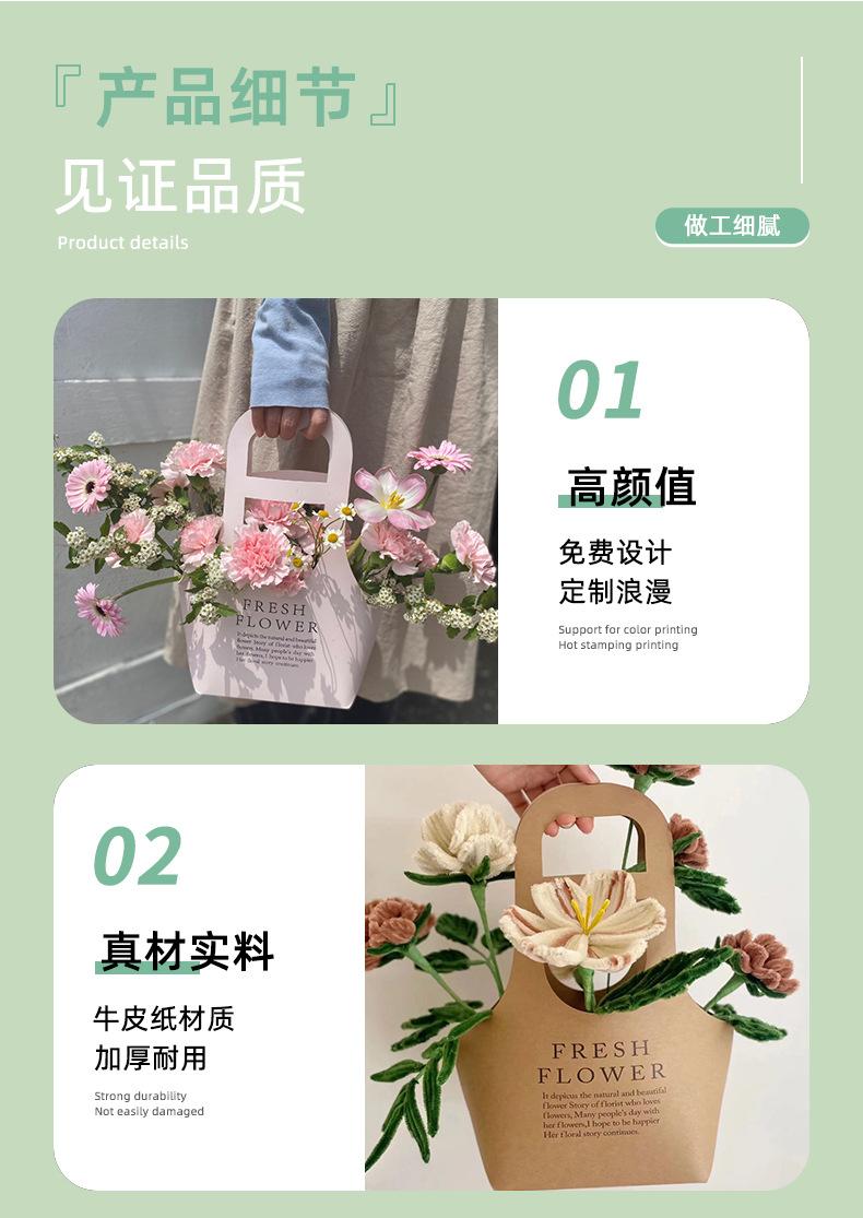 Bolsa de Arreglo Floral Tipo Satchel Personalizada Bolsa de Embalaje para Ramo de Papel Kraft Bolso de Mano para Flores Cesta de Flores Bolsa Impermeable para Flores Caja de Regalo para Ramo