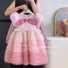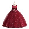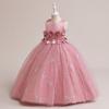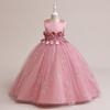 Vestido de princesa para niñas europeas y americanas, vestido largo de malla abullonada con flores para niñas, vestido de noche para banquetes de cumpleaños con lazo para niñas
