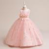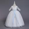 Vestido de malla de nuevo estilo de comercio exterior para niñas, vestido de novia de manga larga hecho a mano con cuentas, vestido de princesa, vestido de niña