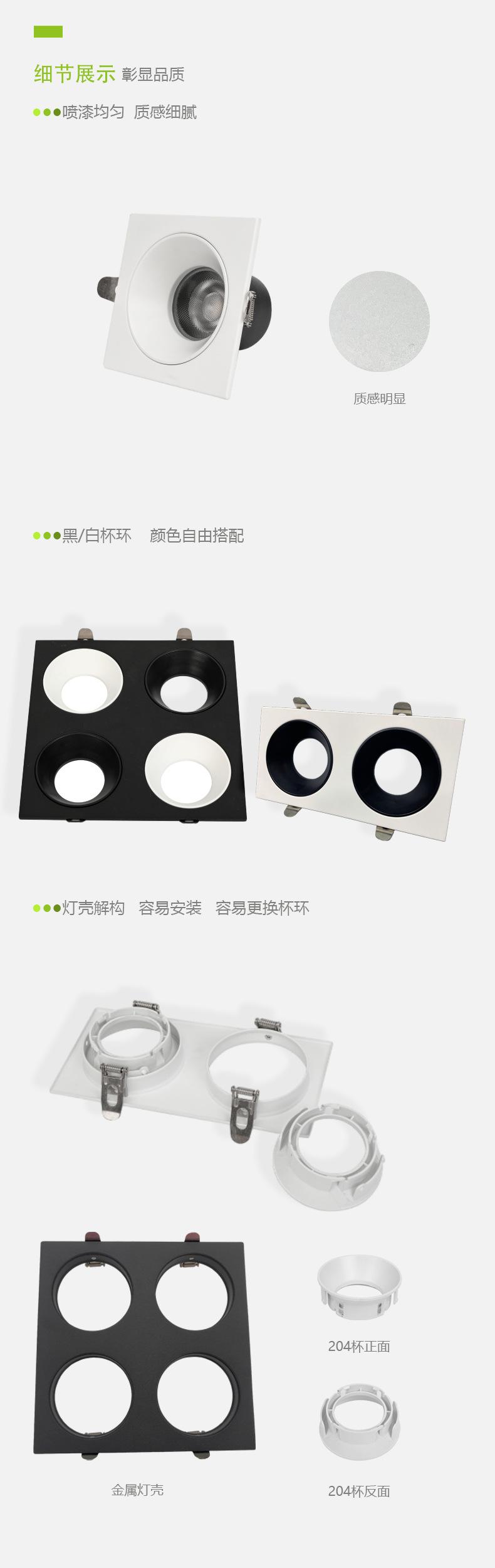 Kit de lámpara de ángulo de anillo de copa no ajustable, carcasa de lámpara MR16 GU10, módulo de 50 LED, foco de fundición a presión, downlight