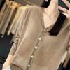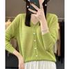 Suéter de lana confeccionado de primera línea, cárdigan de punto para mujer, chaqueta de suéter delgada, otoño e invierno, parte inferior de cuello redondo, manga larga, parte superior suelta
