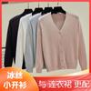 Suéter de lana confeccionado de primera línea, suéter de base de lana 100 para mujer, suéter de cachemira suelto de punto con cuello en V, top ajustado para otoño e invierno