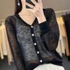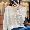 Cárdigan de Punto de Manga Larga de Seda de Hielo para Primavera y Verano 2023 para Mujer, Chaqueta Holgada de Color Sólido con Cuello en V, Camisa Fina para Aire Acondicionado