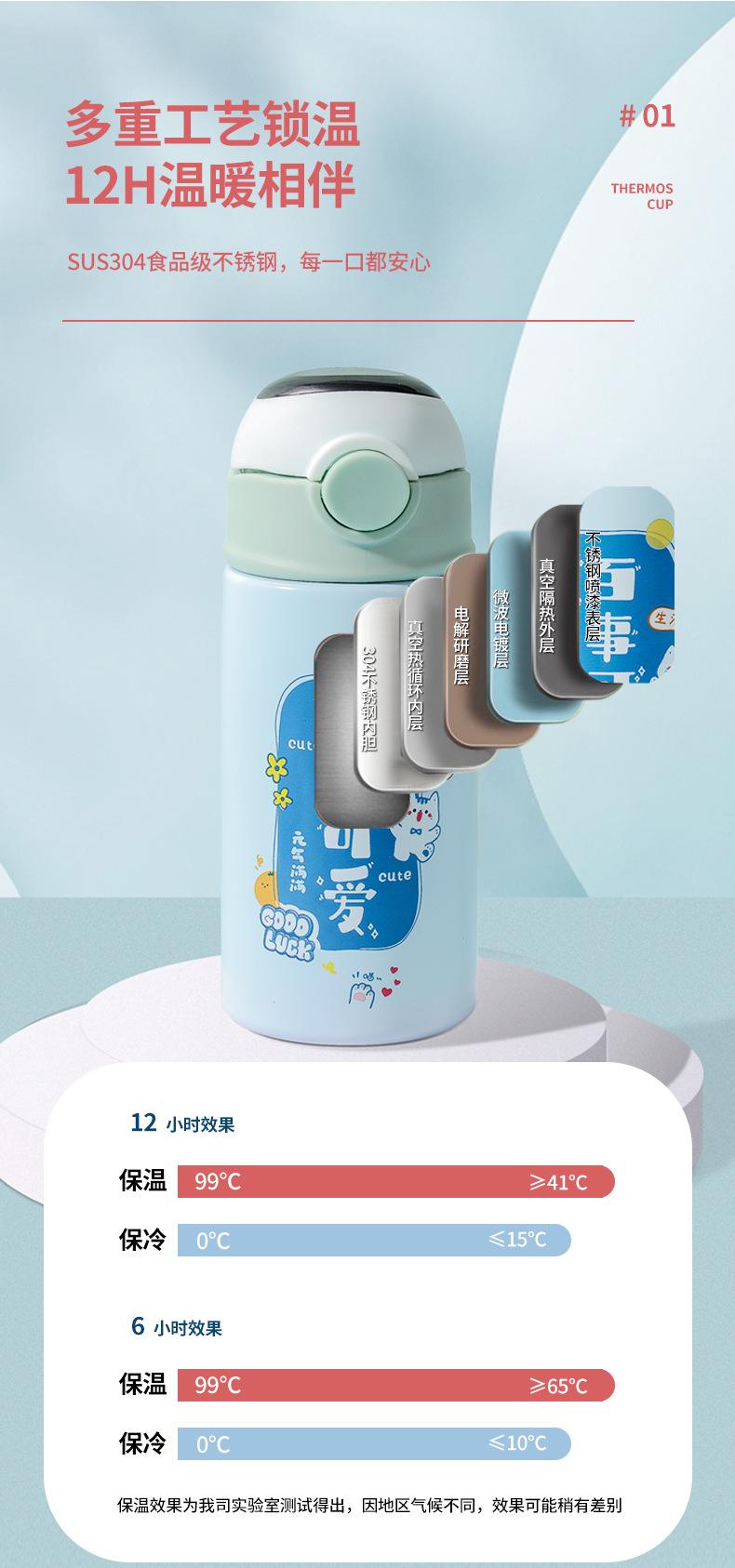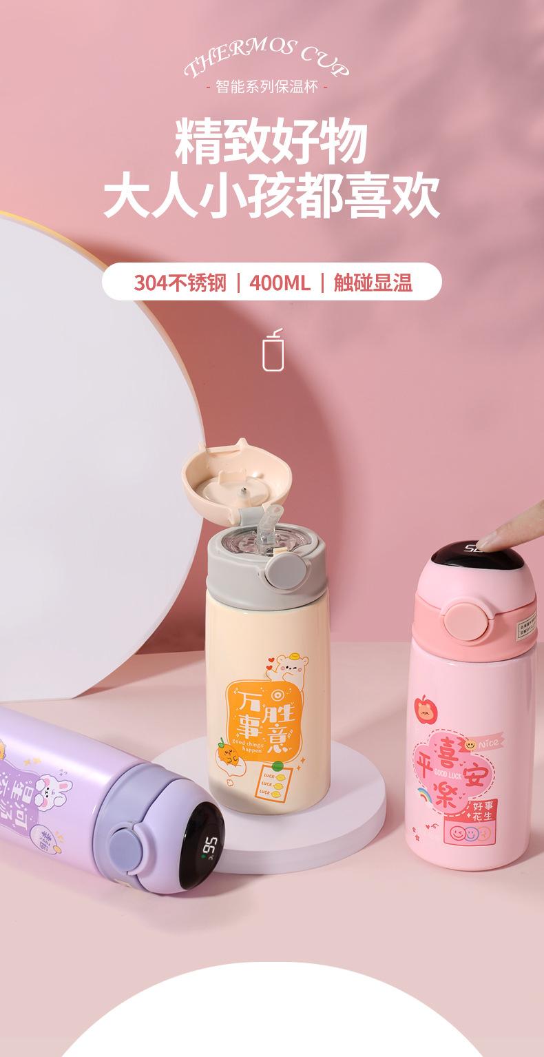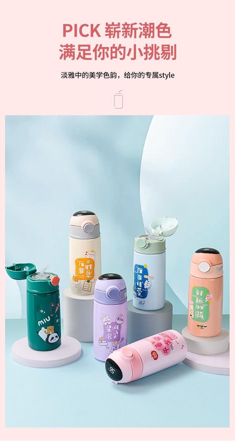 Hervidor Inteligente para Niños Taza Termo de Acero Inoxidable para Estudiantes Masculinos y Femeninos Vaso de Agua con Pajita de Dibujos Animados Vaso de Regalo Personalizado de Pequeña Capacidad