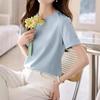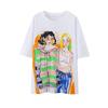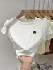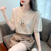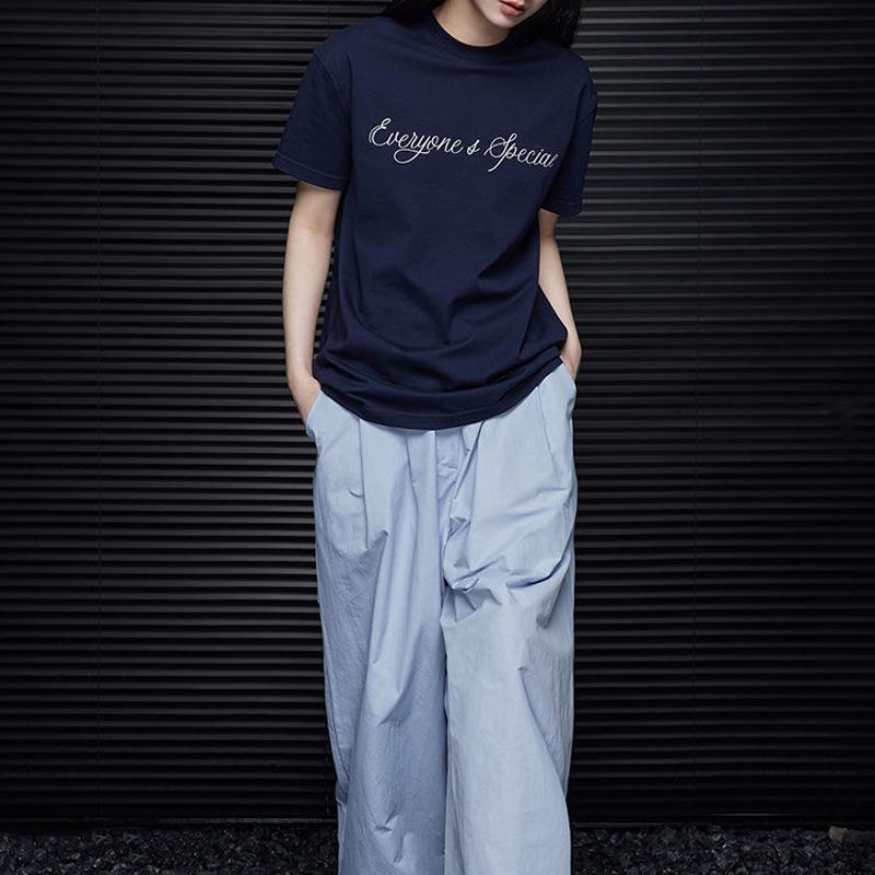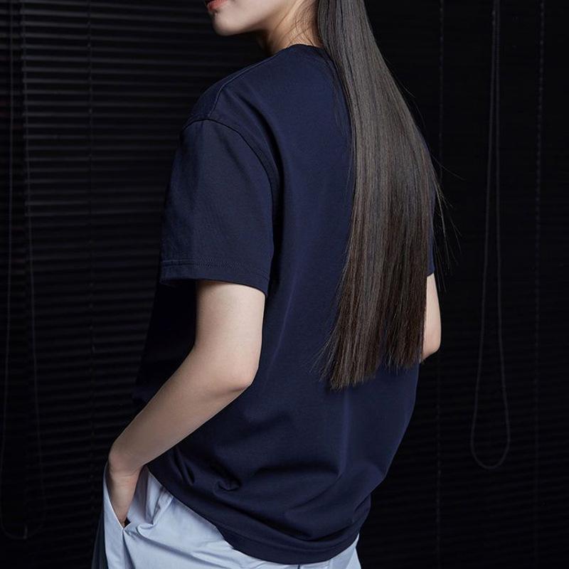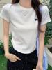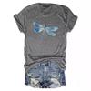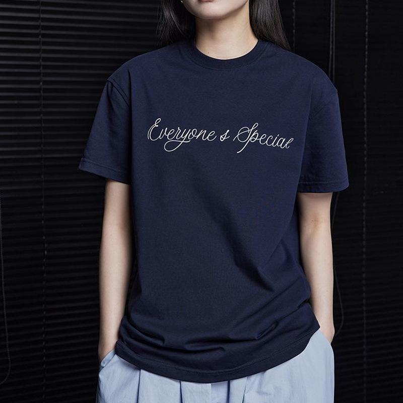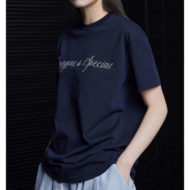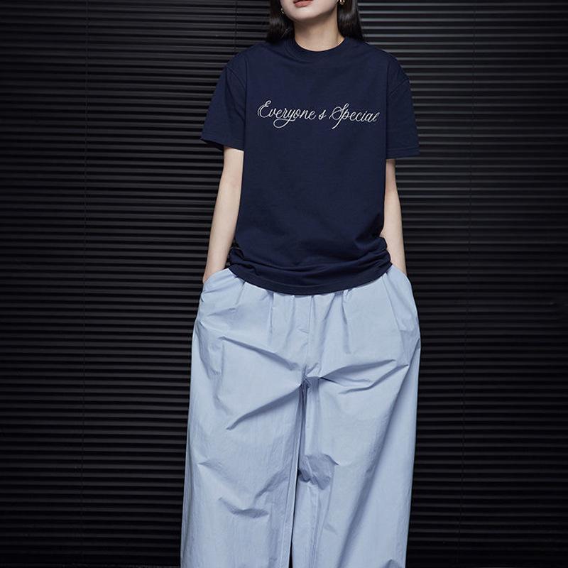 Camiseta azul marino de manga corta con estampado de letras para mujer, estilo americano, estilo retro, holgada, con cuello redondo, novedad de verano de 2024