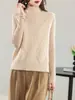 Cárdigan Chaleco de Lana Pura de Doble Cara Otoño e Invierno Nuevo Cuello Medio Alto Apilado Uso Exterior Suéter Sencillo de Moda Tejido Mujeres