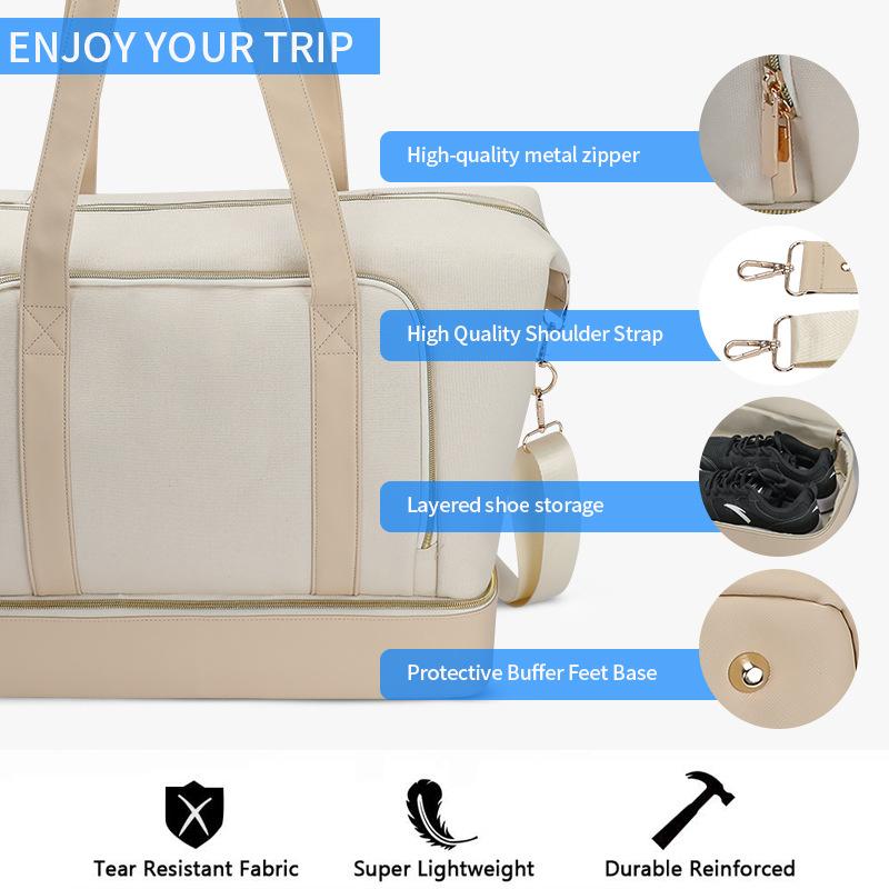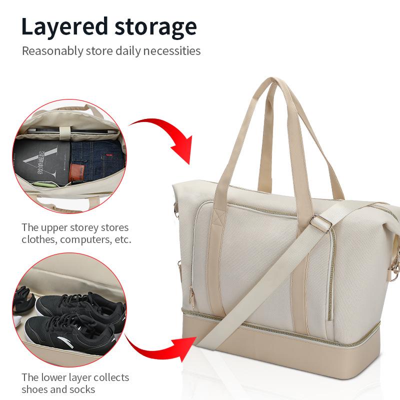 Nueva Bolsa de Viaje Impermeable, Bolsa de Equipaje de Doble Capa, Bolso de Mano, Bolsa de Equipaje, Bolsa de Viaje de Gran Capacidad con Separación Seca y Húmeda