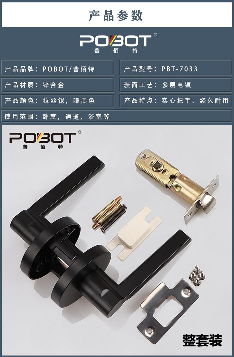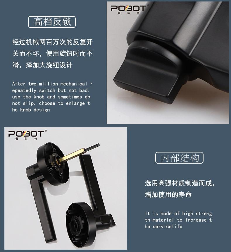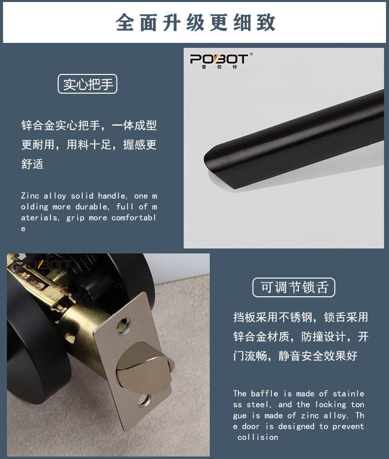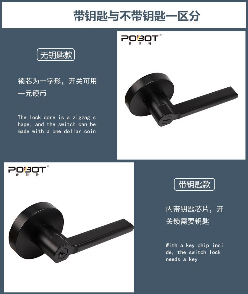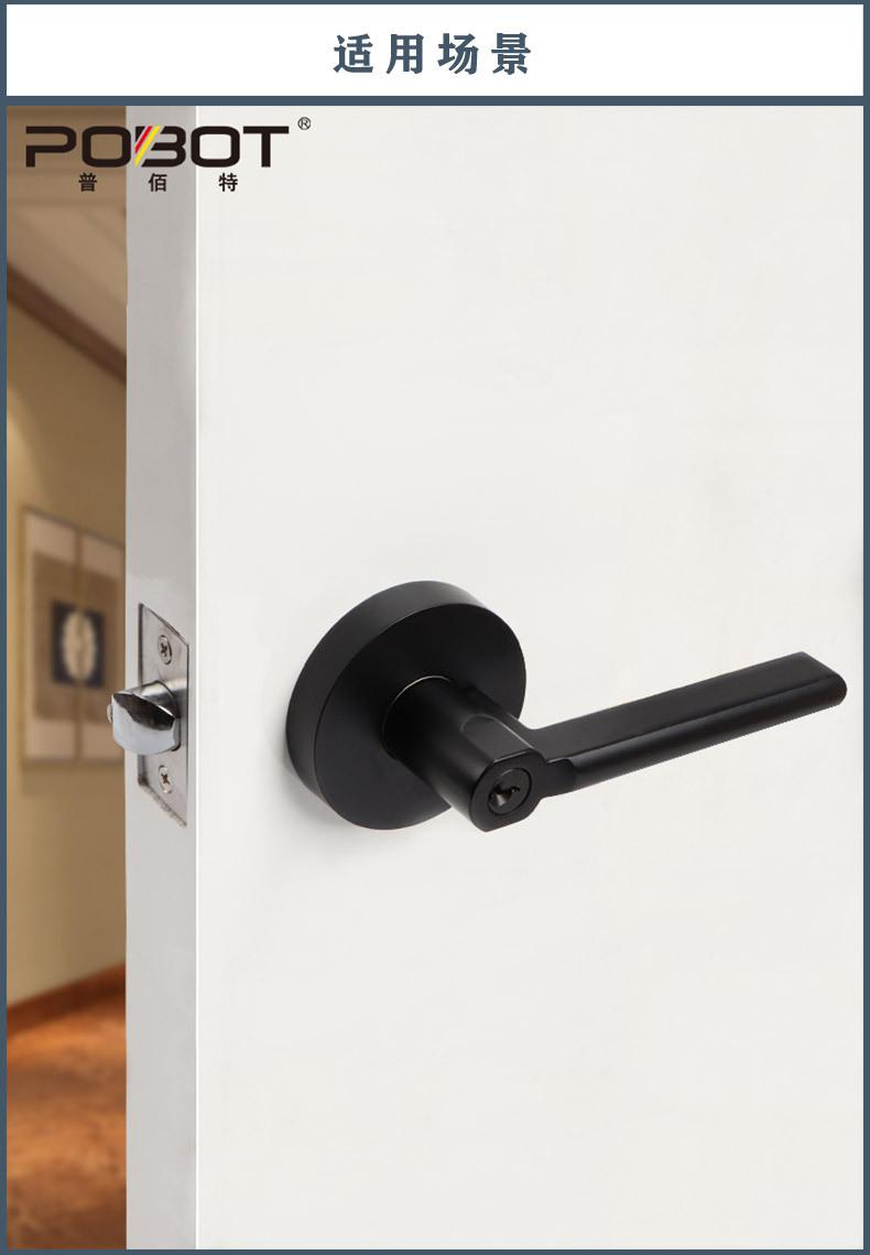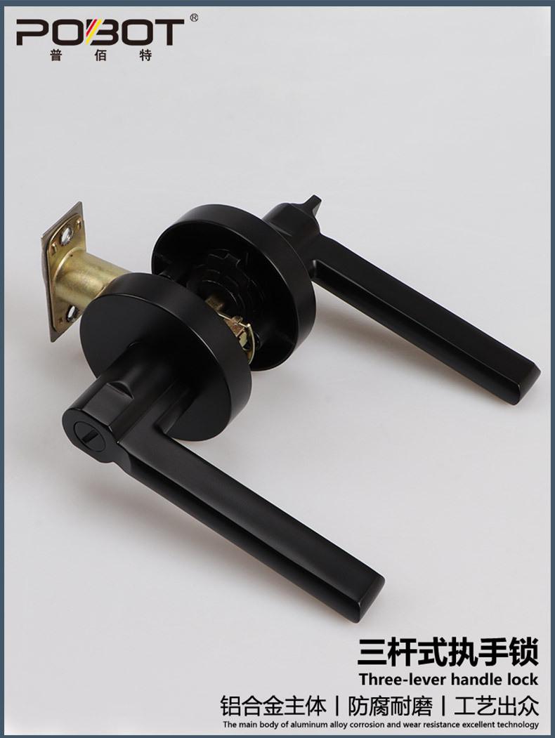 Cerradura de puerta con manija de tres polos, cerradura silenciosa para interiores, puerta de dormitorio, cerradura negra de tres polos, cerradura comercial para baño de hotel