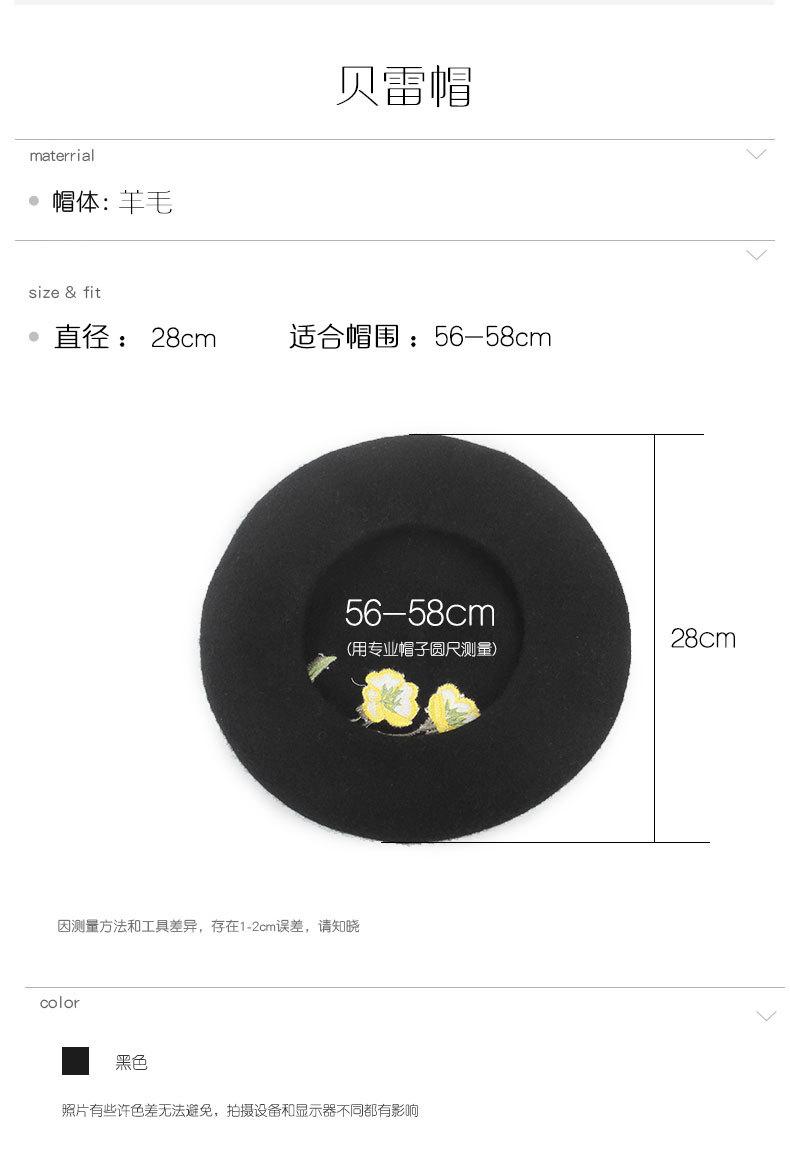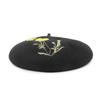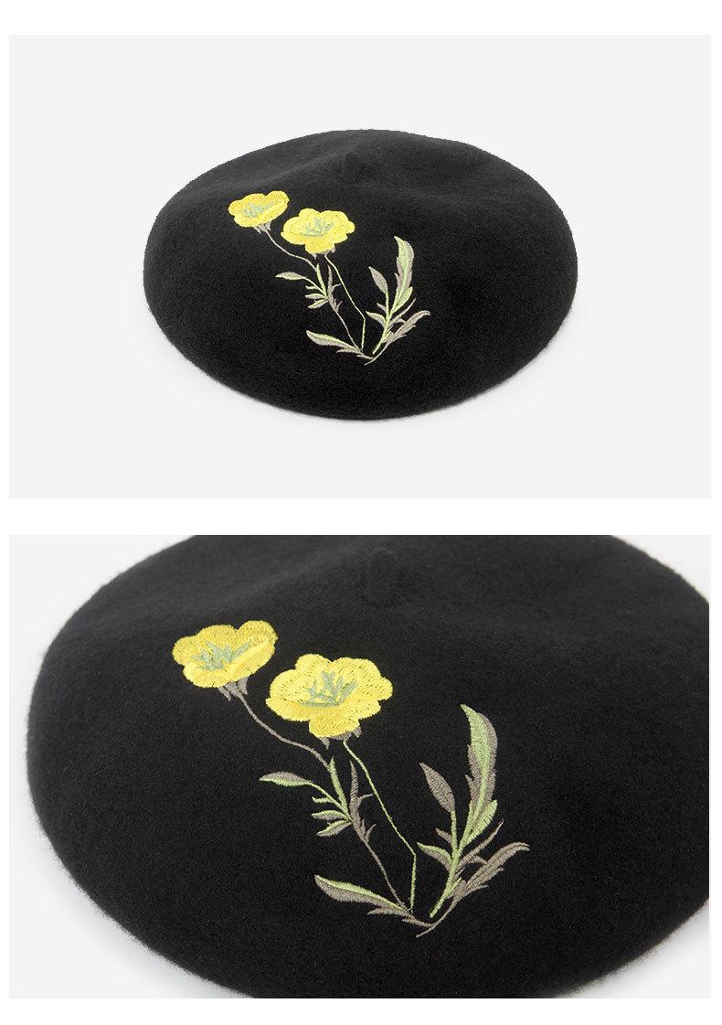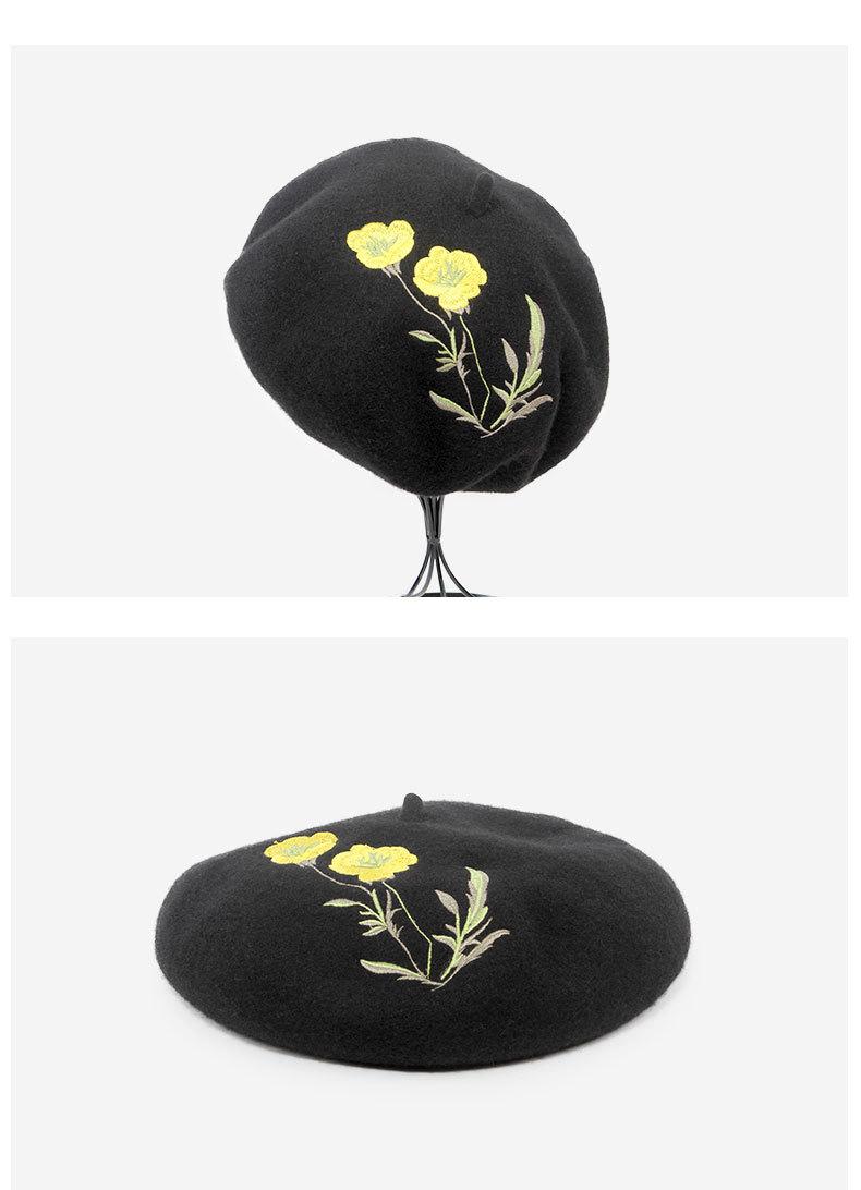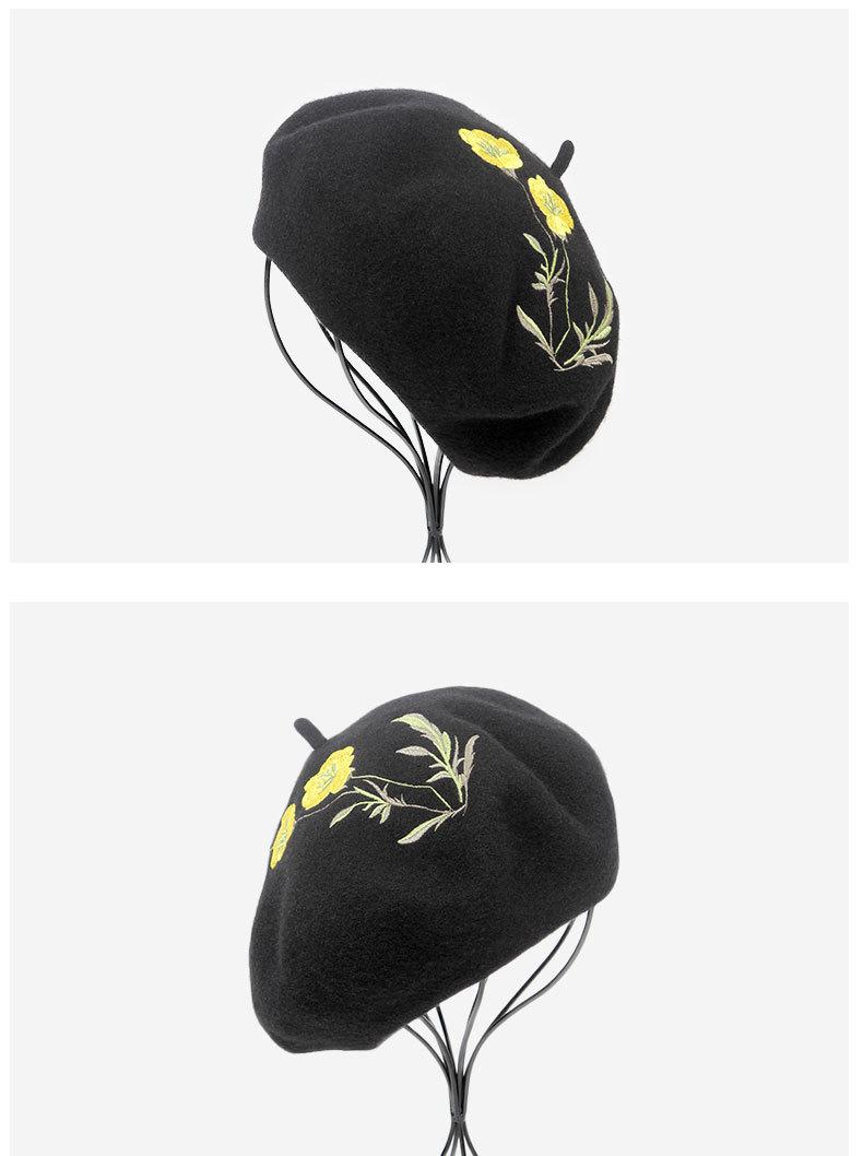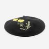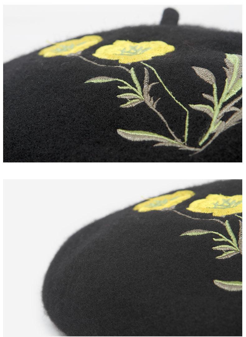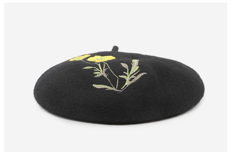 Boina exquisita bordada con flores de lana para mujer, otoño e invierno, gruesa, cálida, elegante, sombrero bordado que combina con todo.